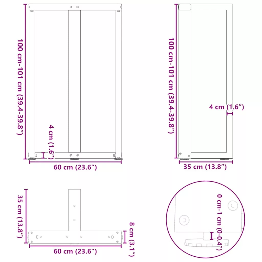 2 db fekete, T-alakú acél bárasztalláb 60x35x(100-101) cm