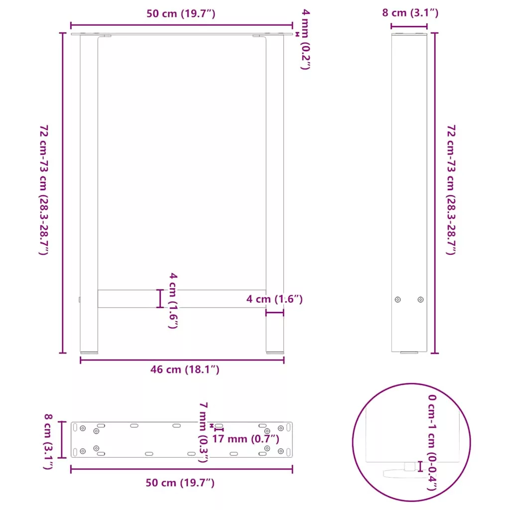 2 db antracitszürke acél étkezőasztalláb 50x(72-73) cm