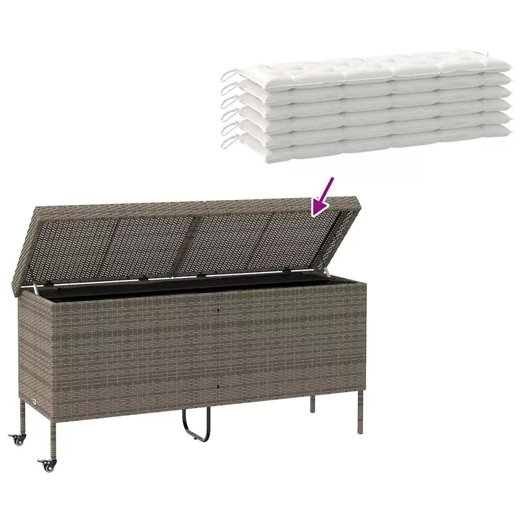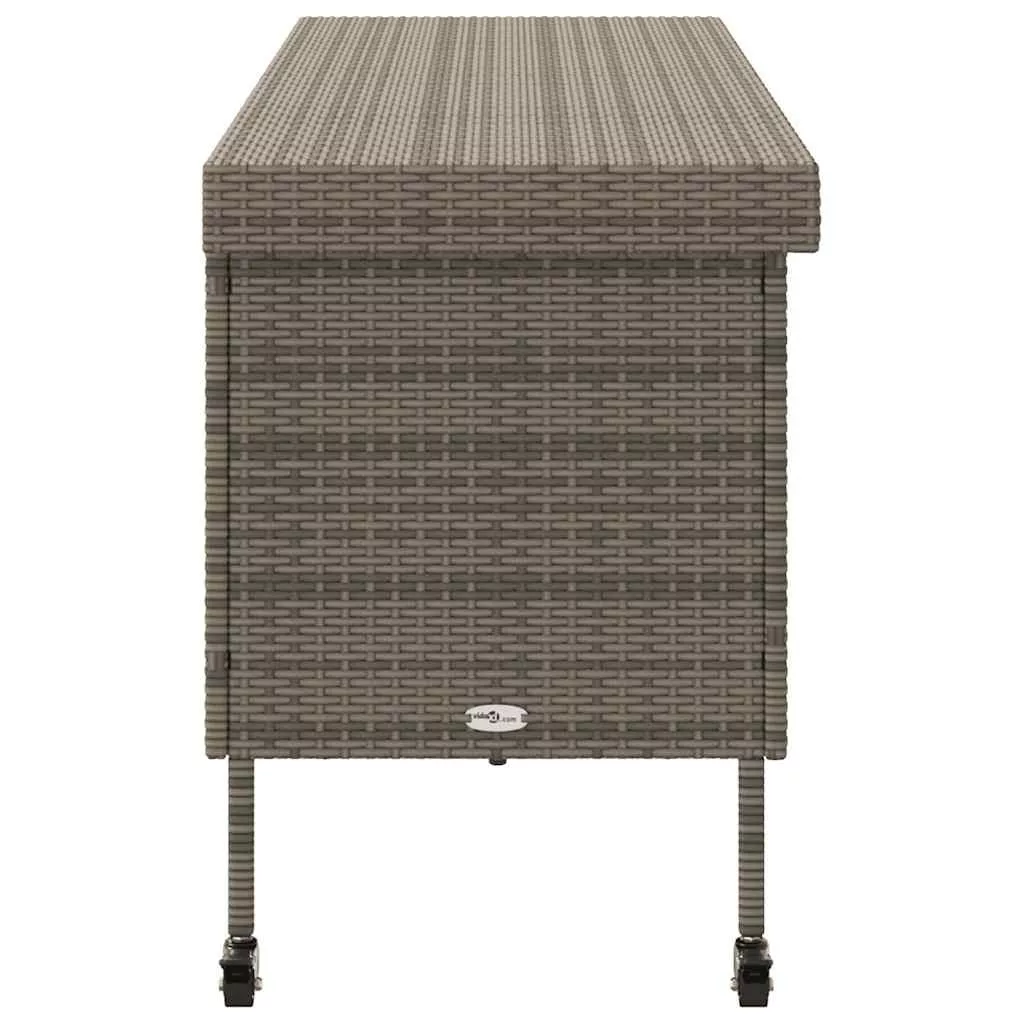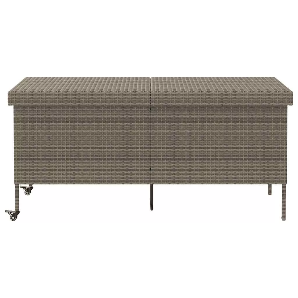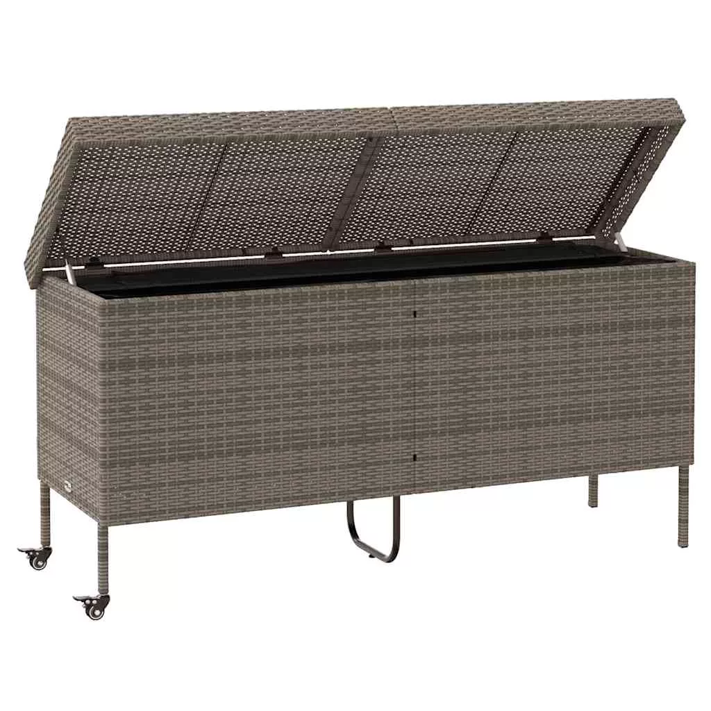 szürke polyrattan kerti tárolóláda kerekekkel 160x55x75 cm