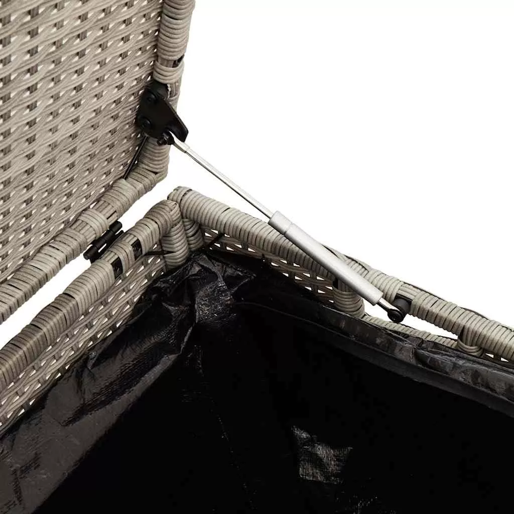 Ez a kerti tárolódoboz tökéletesen alkalmas a kültéri bútorpárnák, kerti kellékek, medencetörölközők és egyéb tárgyak rendezett és könnyen hozzáférhető tárolására. Tartós anyag: A PE rattan, más néven polyrattan, egy erős, kevés karbantartást igénylő szintetikus anyag, amely úgy néz ki, mint a természetes rattan. Könnyű, könnyen tisztítható, tartóssága és időjárásálló tulajdonságai miatt gyakran használják kültéri bútorok készítéséhez.Robusztus és stabil váz: A porszórt acélváz erős, stabil, tartós, ellenáll a korróziónak és a zord időjárásnak, így biztosítja a tartós használatot.Biztonságos és könnyen nyitható és zárható: A gázrugó megkönnyíti a fedél kinyitását, és megakadályozza, hogy becsapódjon vagy becsípje az ujjakat.Tárolási funkció: A kerti bútor alatt tárolóhely található, vízálló zsákkal felszerelve a párnák, játékok és egyéb tárgyak tárolására. Jó tudni:A kültéri bútor szépségének megőrzése érdekében javasoljuk, hogy vízálló huzattal fedje be.