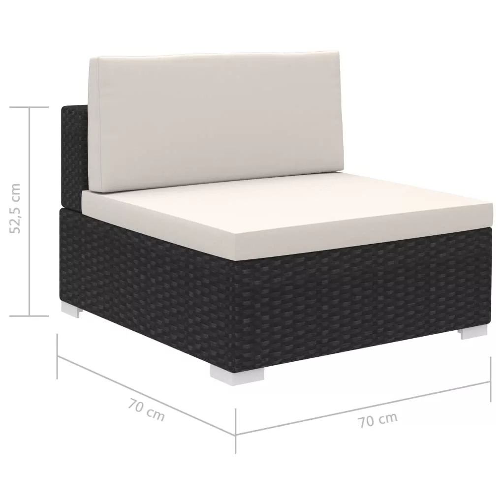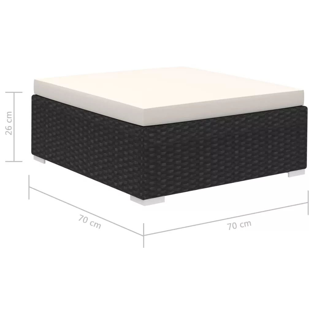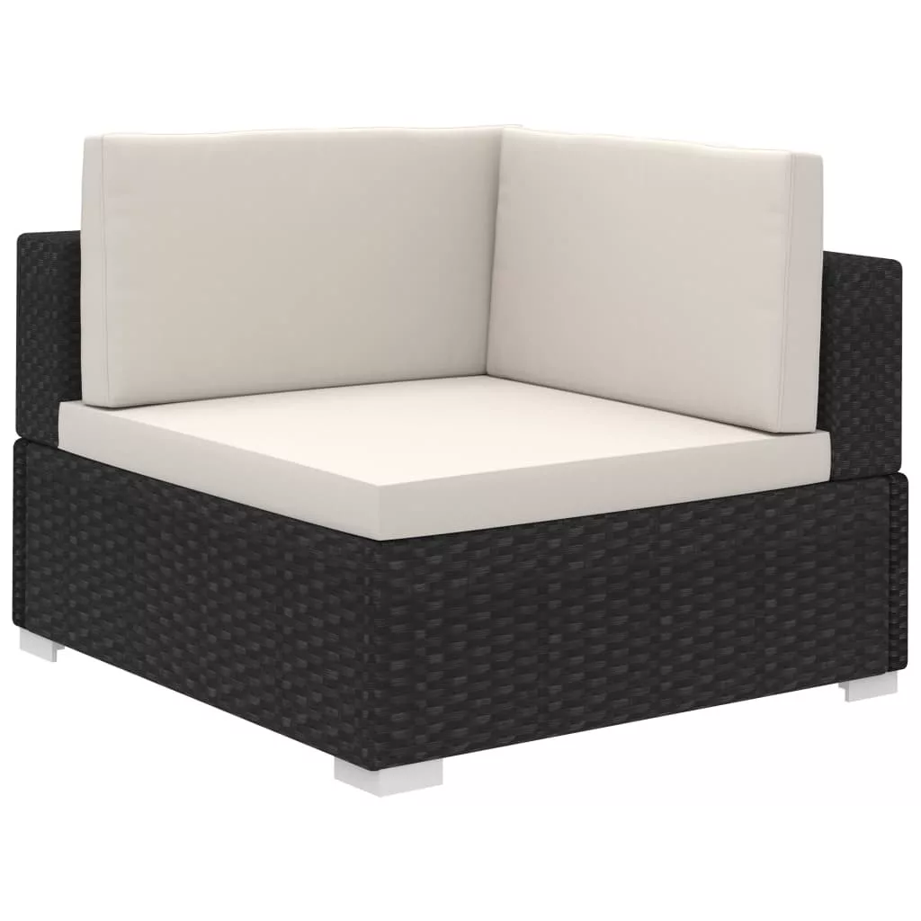 Ez a rattan pihenőszett egyszerre stílusos és praktikus. Kertje vagy verandája fénypontja lehet. A pihenőszett arra lett tervezve, hogy egész éven át lehessen használni szabadtéren. Az időjárásálló és vízálló PE rattannak hála a pihenőszett könnyen tisztítható, kopásálló és mindennapos családi használatra is alkalmas. Masszív porszórt acélvázzal és rozsdamentes műanyag lábakkal lett felszerelve. Emellett könnyű is, így egyszerűen mozgatható. A levehető ülő- és hátpárnák rendkívül kényelmesek. A könnyen tisztítható, rejtett cipzáras poliészter huzat könnyedén levehető és mosható. Ez a sokoldalú rattan pihenőszett rugalmasan variálható, így bármely környezetbe remekül illik. A szett 1 db sarokülőt, 3 db karfa nélküli ülőhelyet, 3 db zsámolyt, 1 db üveglappal ellátott dohányzóasztalt, 7 db ülőpárnát és 5 db hátpárnát tartalmaz. Figyelem: Eső, hó vagy fagy esetén azt tanácsoljuk, hogy takarja le a garnitúrát.