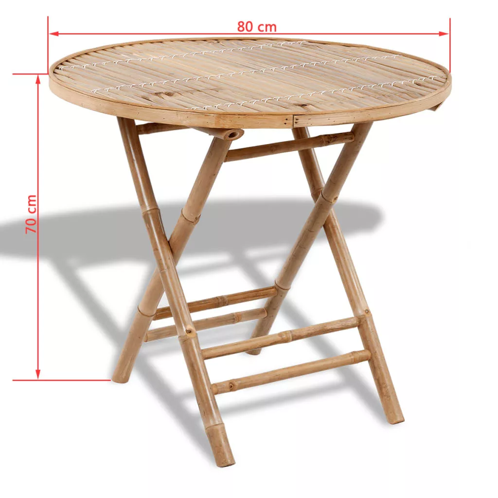 Ez az elegáns dizájnnal rendelkező bambusz étkezőszett 1 asztalból és 4 székből áll. Egyszerű eleganciája rusztikus bájt csempész szabadtéri étkezésébe. Tömör bambuszból készült, így szilárd és strapabíró. Emellett ellenáll az időjárás viszontagságainak és vízálló, valamint egy nedves ruhával könnyen letörölhető. Az asztal és a székek a helytakarékosság érdekében használaton kívül mind összecsukhatók. A szett 1 összecsukható asztalt és 4 összecsukható tartalmaz. Figyelem: Kültéri bútora élettartamának meghosszabbítása érdekében javasoljuk, hogy tisztítsa rendszeresen, és ne hagyja feleslegesen a szabadban, védelem nélkül.Tisztítás: Használjon enyhe szappanoldatotTárolás: Ha lehetséges, tárolja zárt, hűvös, száraz helyen. Ha a terméket a szabadban tárolja, védje vízálló burkolattal. Eső vagy havazás után törölje le és szárítsa fel a felesleges vizet vagy havat a sík felületekről. Hagyjon elegendő légkeringést a nedvességből eredő károk elkerülése érdekében.