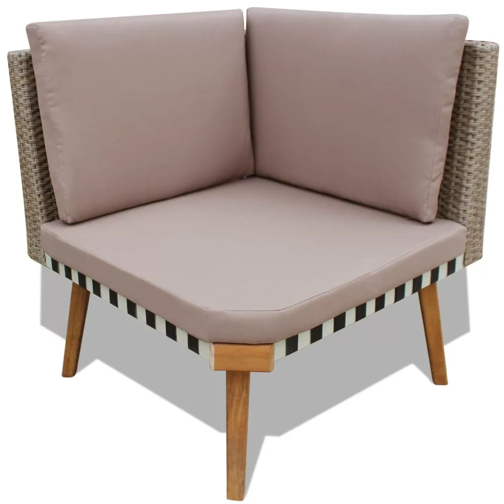 Ez a kerti ülőgarnitúra tökéletes kiegészítője lehet kültéri berendezésének. Letisztult, mégis stílusos dizájnjával modern eleganciát kölcsönöz teraszának, erkélyének vagy kertjének. A könnyen tisztítható és kopásálló kerti bútorgarnitúra időjárásálló és vízálló PE rattanból készült, így mindennapos kültéri használatra is alkalmas. Az olajjal kezelt faváznak köszönhetően rendkívül masszív és strapabíró. A szetthez kiemelkedően kényelmes, vastag ülőpárnák és hátpárnák is járnak. A párnahuzatok cipzárral lettek ellátva és moshatóak. A szállítás 1 sarokkanapéból, 2 kétszemélyes kanapéból, 1 dohányzóasztalból, 6 hátpárnából és 3 ülőpárnából áll. FigyelemJavasoljuk, hogy hóban, esőben és fagyban takarja le a szettet.