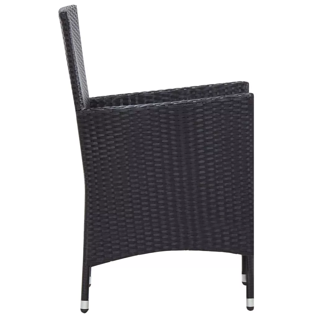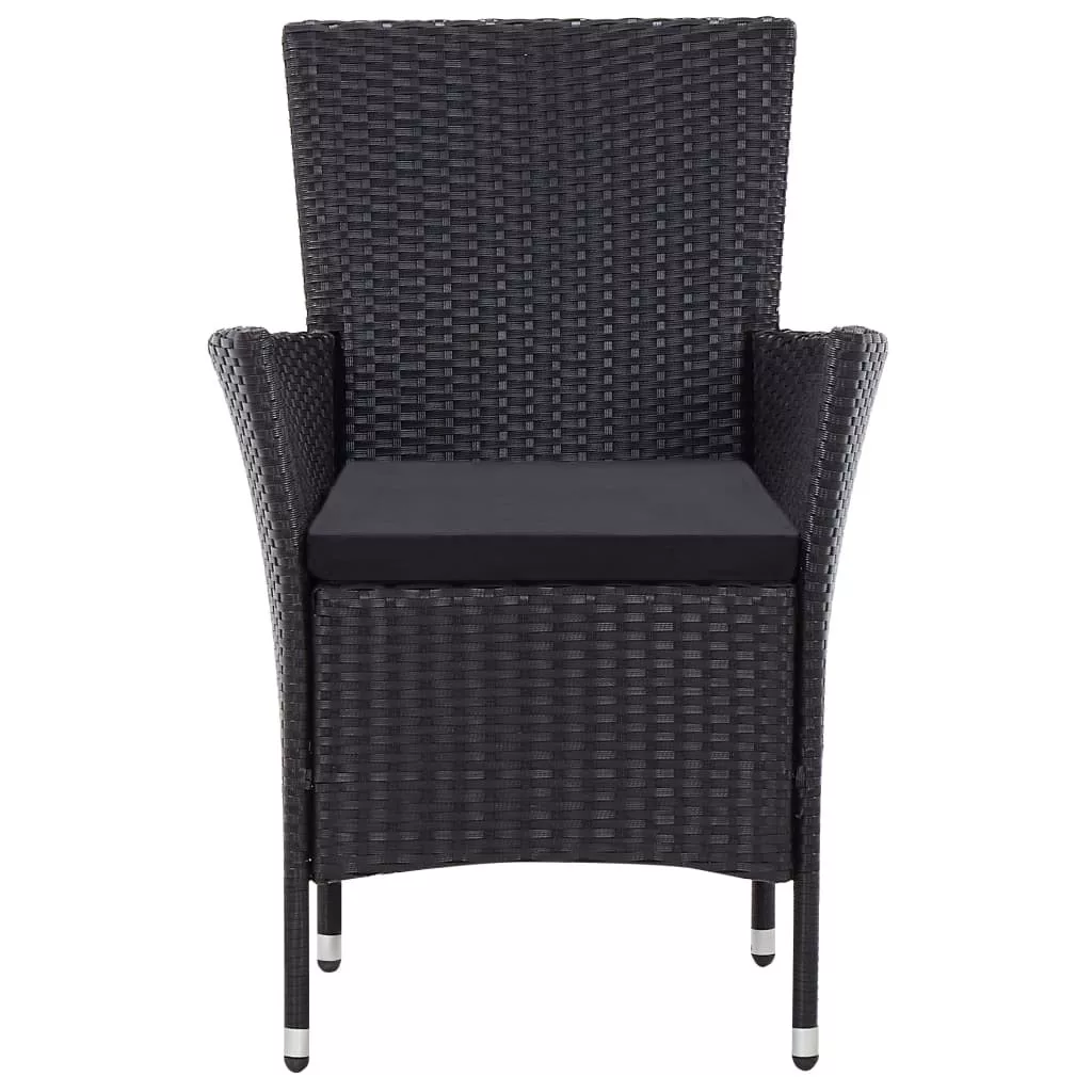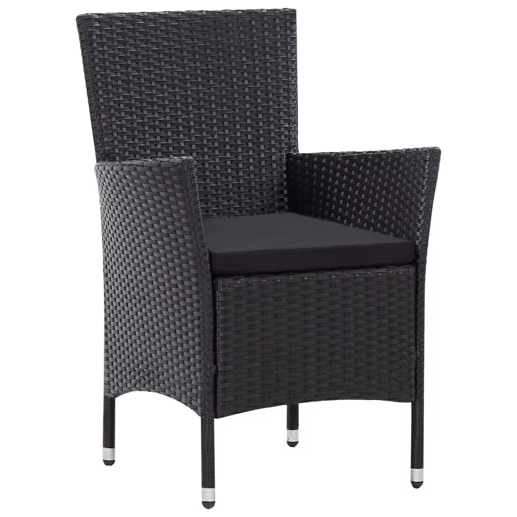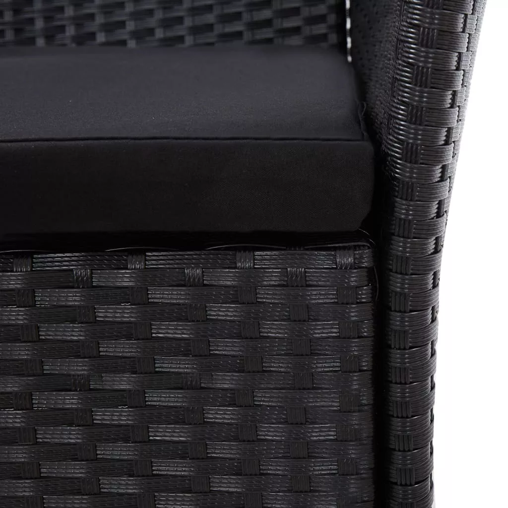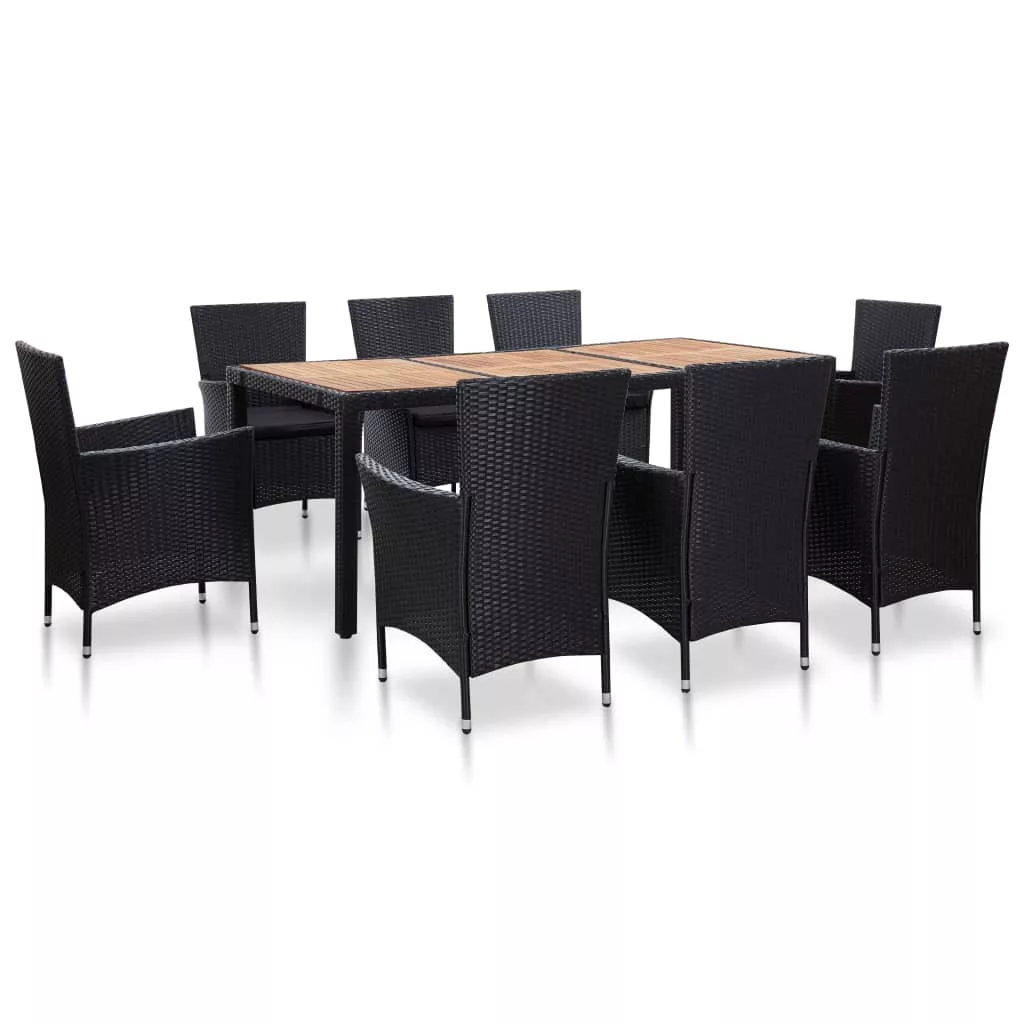 9-részes fekete polyrattan kültéri étkezőszett párnákkal