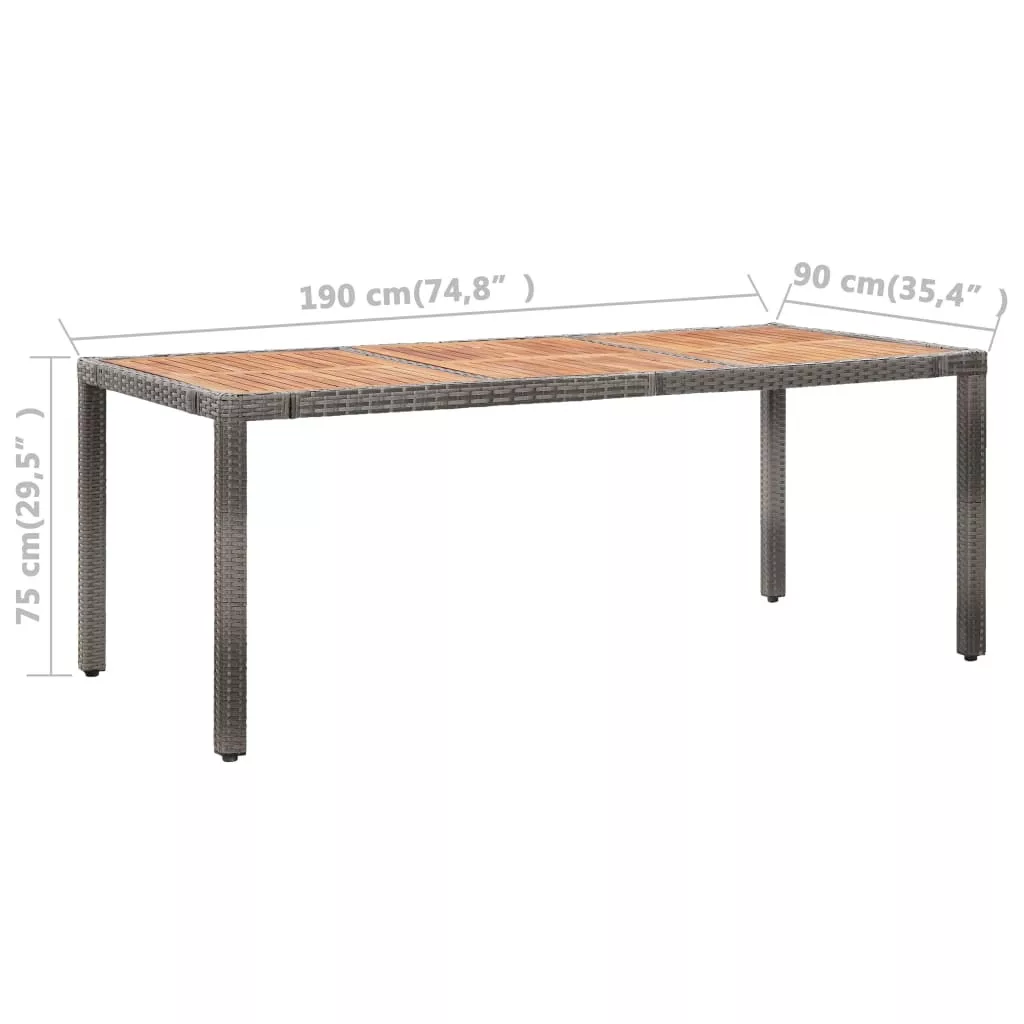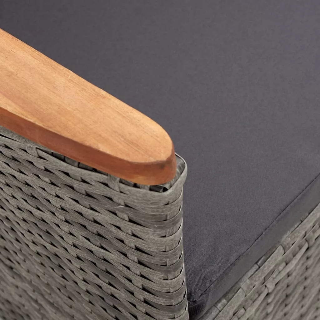 Stílusos polyrattan kerti bútorgarnitúránk azonnal kertje vagy terasza gyöngyszeme lesz! Ez a rattan étkezőszett elegáns, kortárs dizájnjával tökéletes a kertben való pihenéshez vagy a frissítő étkezésekhez. Vízálló és időjárásálló PE rattanból készült, így a szett könnyen tisztítható, strapabíró és mindennapos használatra alkalmas. A porszórt acélvázaknak köszönhetően pedig stabil és erős. Az asztallap és a karfák akácfából készültek, amely egy trópusi keményfa és rusztikus bájt sugároz. 2 széket a 6 darabból le lehet fektetni állítható hátrésze miatt. A háttámla az oldalsó gomb megnyomásával dönthető a kényelmes fekvés kedvéért. Könnyű súlyának köszönhetően a szett minden eleme könnyen mozgatható. A vastag, puha, habszivaccsal bélelt ülések rendkívül kényelmesek, emellett pedig vízlepergető poliészterből készültek. A huzatok cipzárosak, így levehetők és moshatóak. A kerti bútorszett tartalma: 1 db asztal, 8 db magastámlájú szék és 8 párna. Figyelem: A termék minőségének megőrzése érdekében kérjük, fagy, hó és eső esetén takarja le.