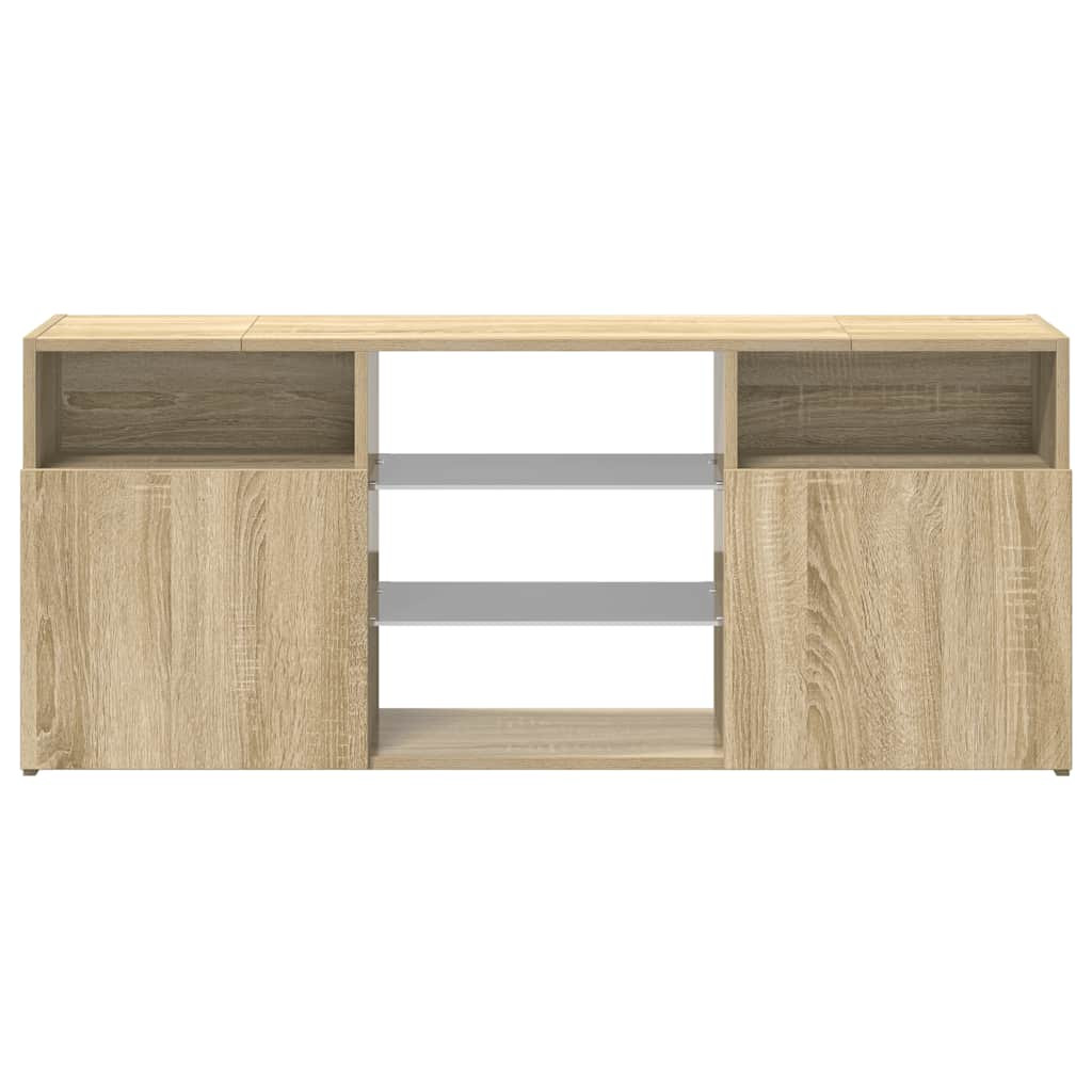 Ez a stílusos, mégis praktikus kialakítású LED-lámpákkal ellátott TV-szekrény minden bizonnyal szobája középpontjává fog válni. A HiFi szekrény stabil felépítése rendkívül strapabíróvá teszi. Rengeteg hely marad a DVD-lejátszó, a játékkonzol, a streaming eszközök és az adathordozók számára. Ez a TV-állvány RGB LED-es lámpákkal rendelkezik, amelyek különböző menüpontokkal változtatják meg a lámpák színét és hagyják, hogy a színek automatikusan váltakozzanak. A LED-es lámpák hangsúlyozzák a modern megjelenést és hozzájárulnak a divatos érzethez. Ez a TV-szekrény nedves ruhával könnyen tisztítható. Megjegyzés: A termék USB-csatlakozóval rendelkezik, ám a hitelesített 5 V-os USB áramforrást a csomag nem tartalmazza.
