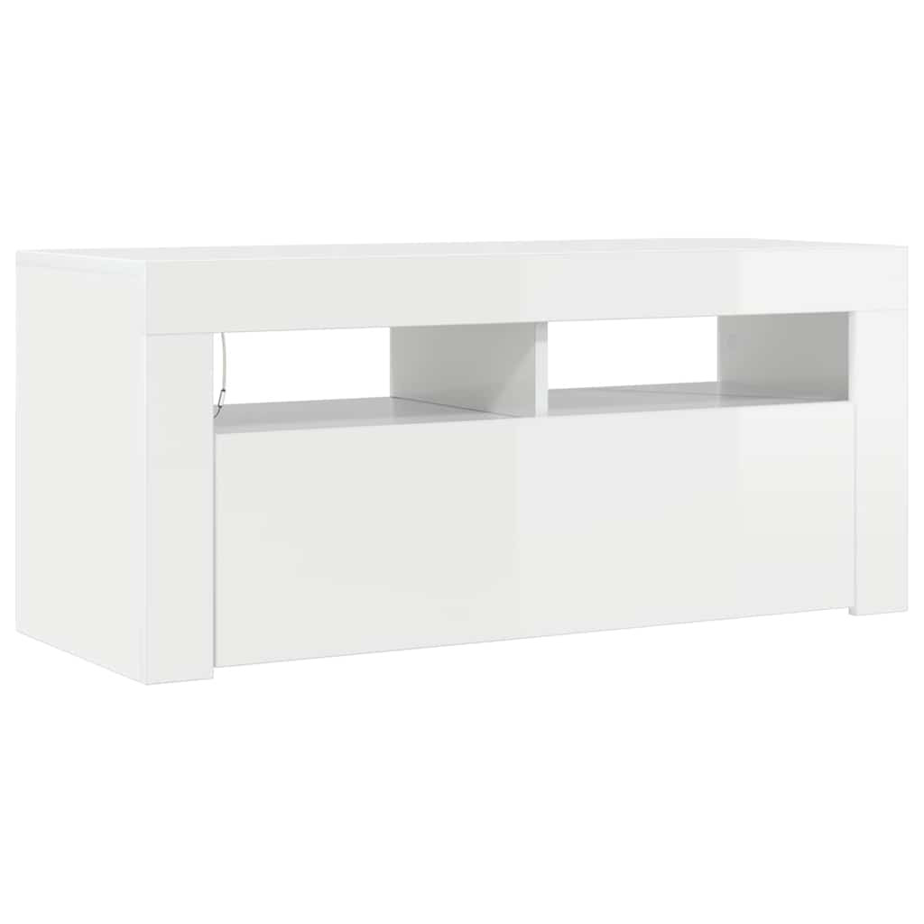 magasfényű fehér TV-szekrény LED lámpákkal 90x35x40 cm