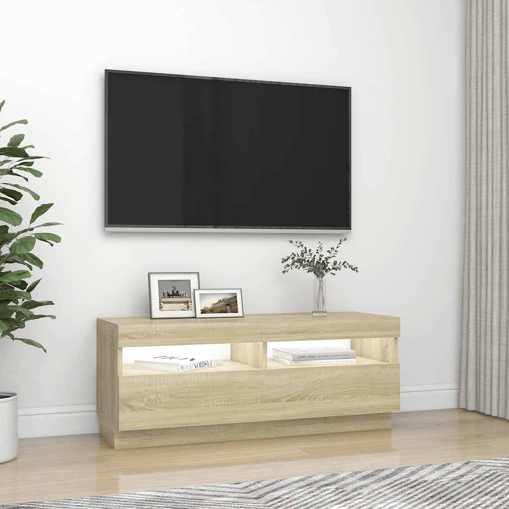 sonoma tölgy színű TV-szekrény LED-lámpákkal 100 x 35 x 40 cm