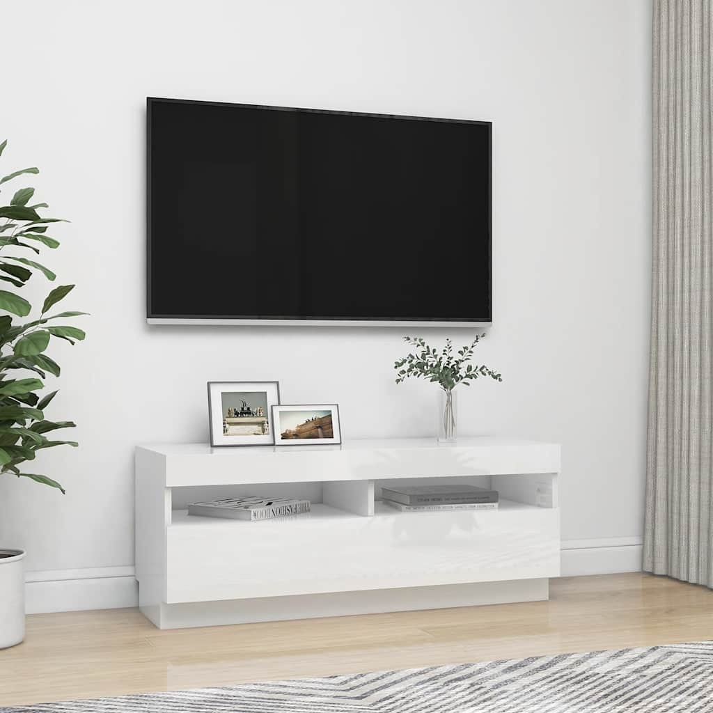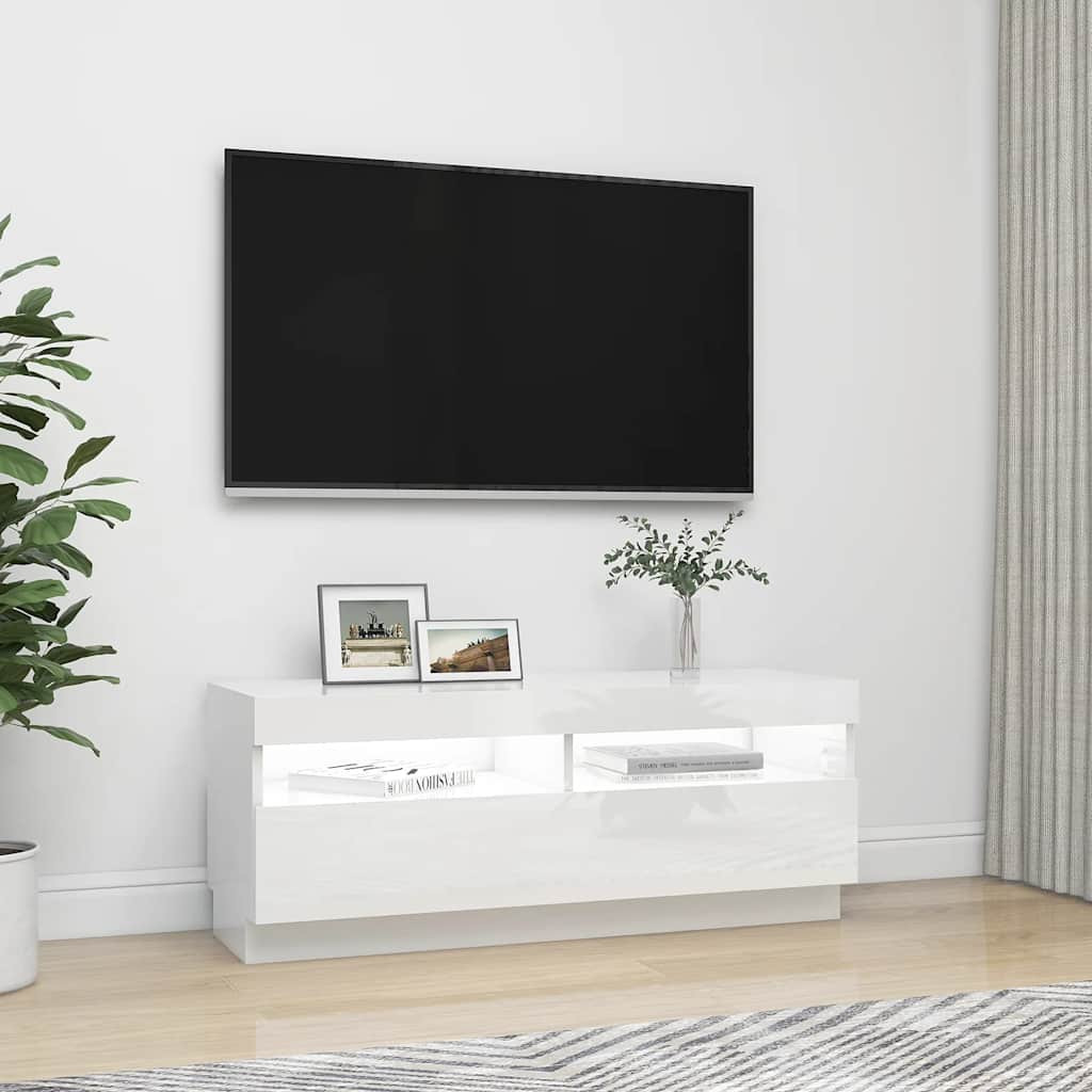 magasfényű fehér TV-szekrény LED-lámpákkal 100 x 35 x 40 cm
