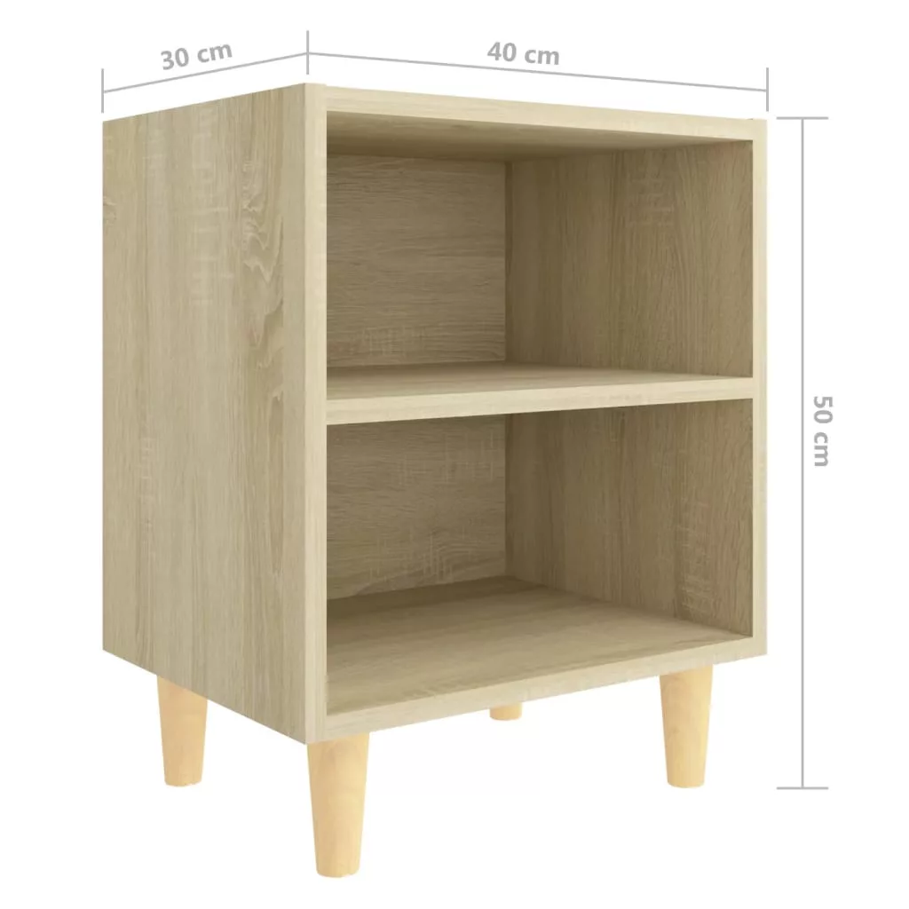 2 db tölgyszínű éjjeliszekrény tömör fa lábakkal 40x30x50 cm