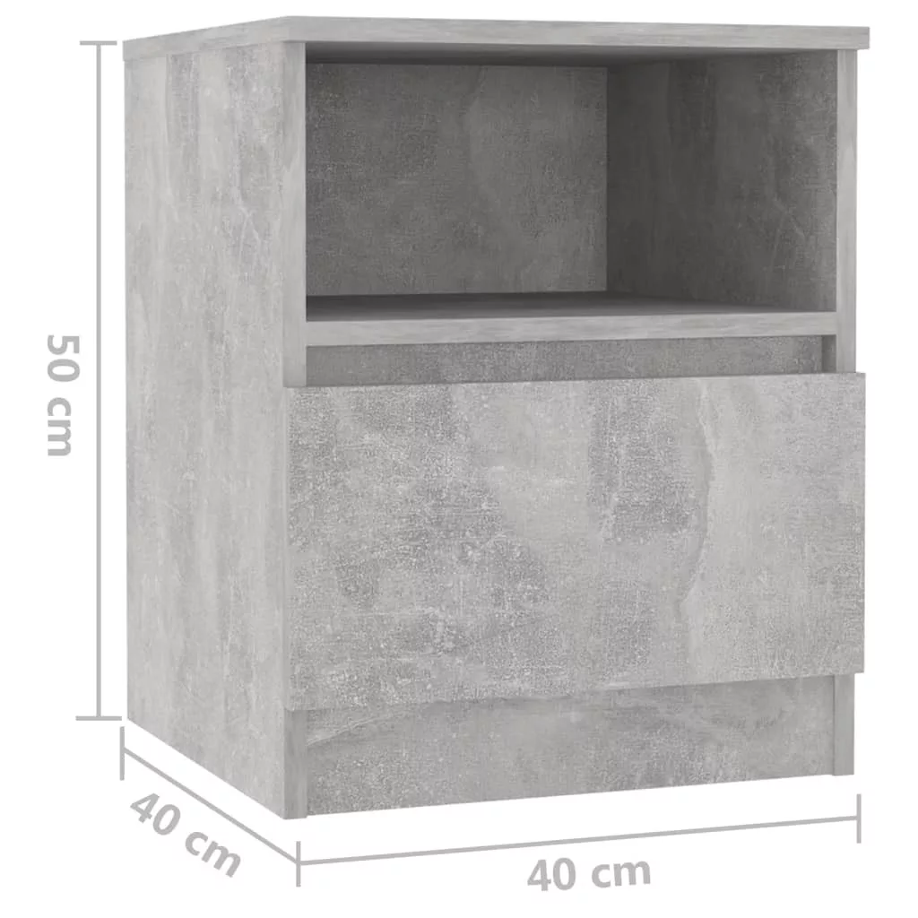2 db betonszürke szerelt fa éjjeliszekrény 40 x 40 x 50 cm