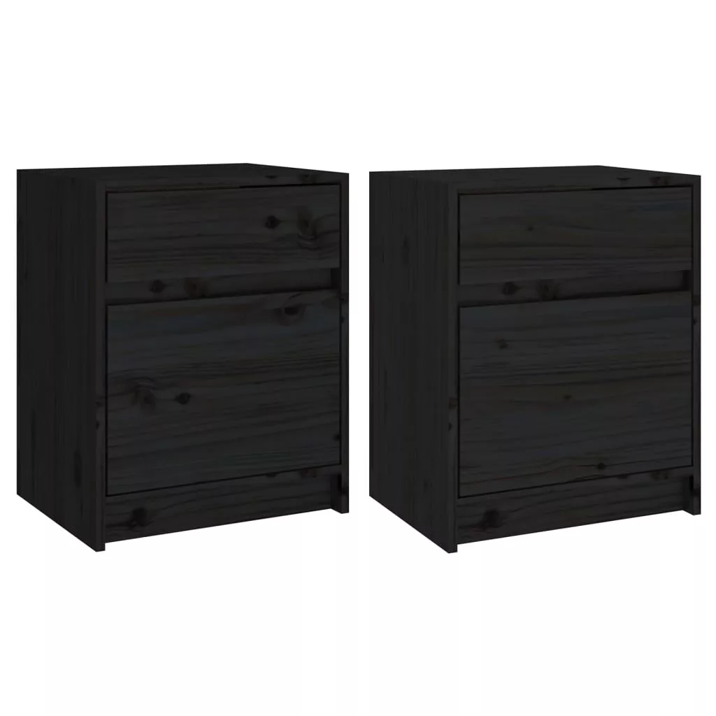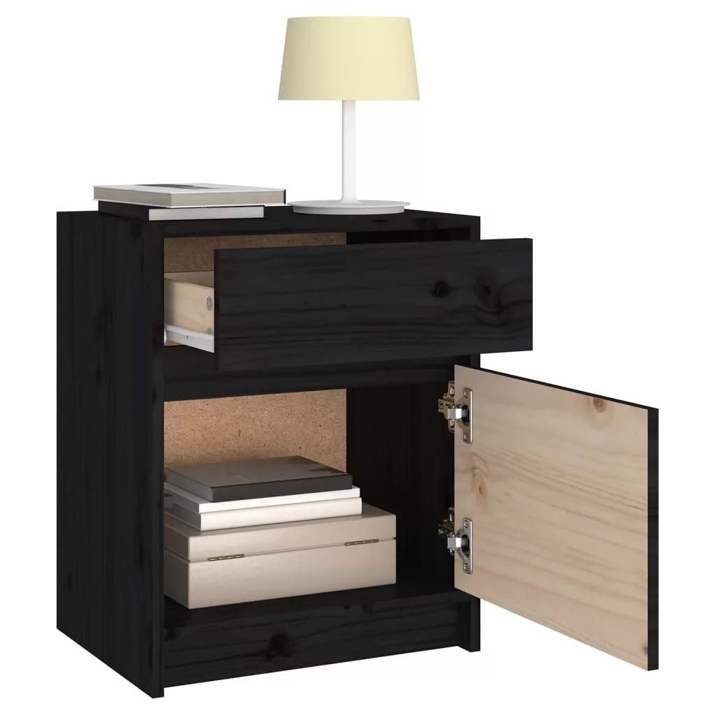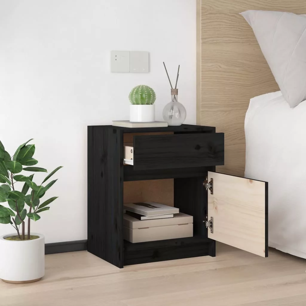 2 darab fekete tömör fenyőfa éjjeliszekrény 40 x 31 x 50 cm