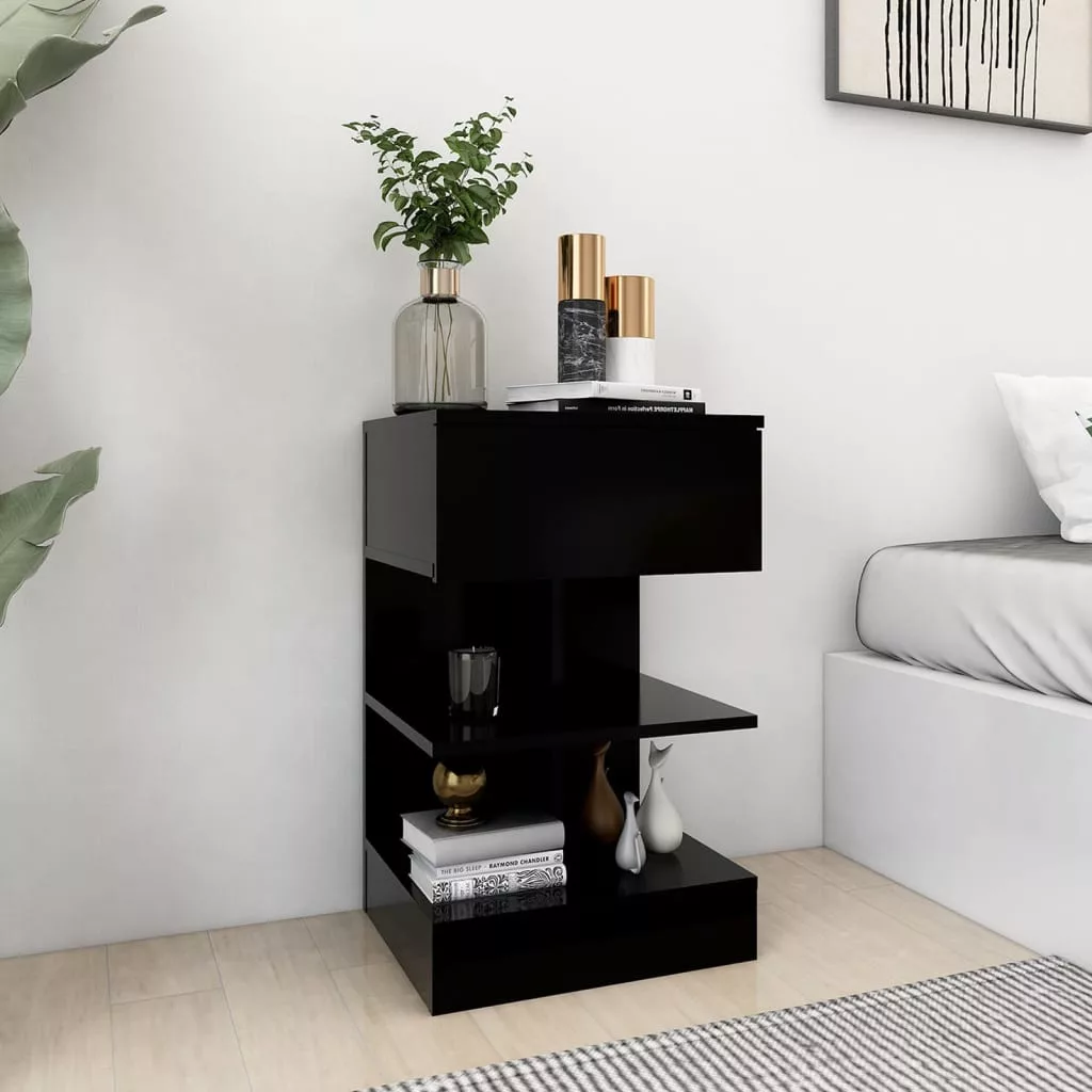 fekete szerelt fa éjjeliszekrény 40 x 35 x 65 cm