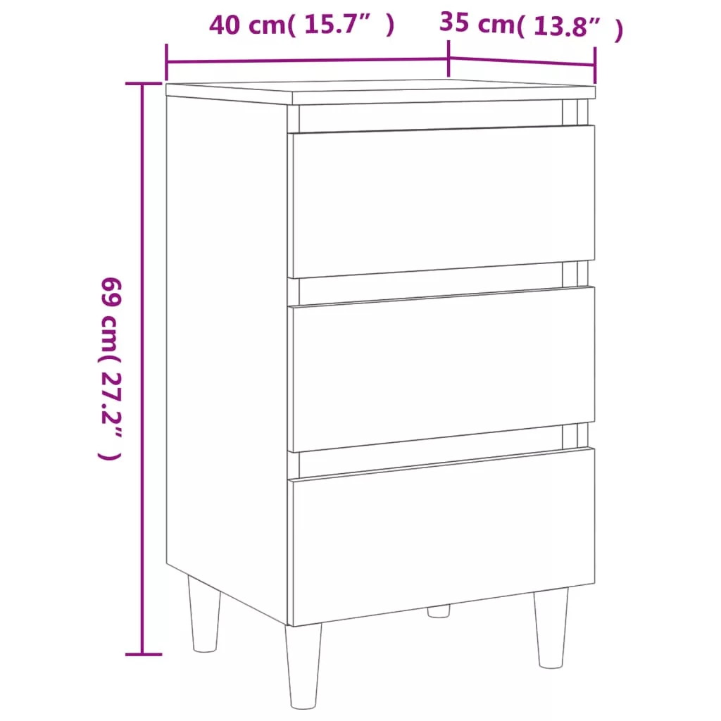 tölgyszínű éjjeliszekrény tömör fa lábakkal 40x35x69 cm