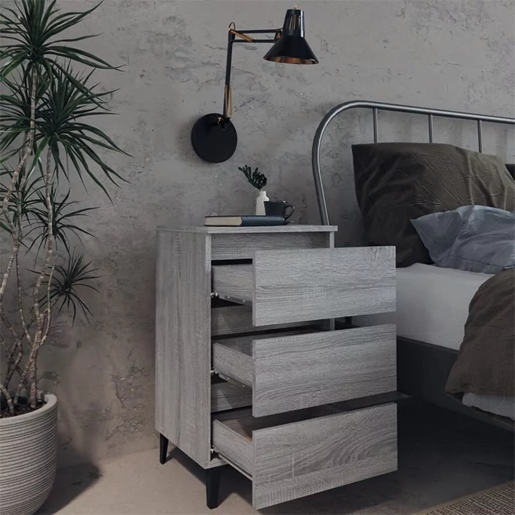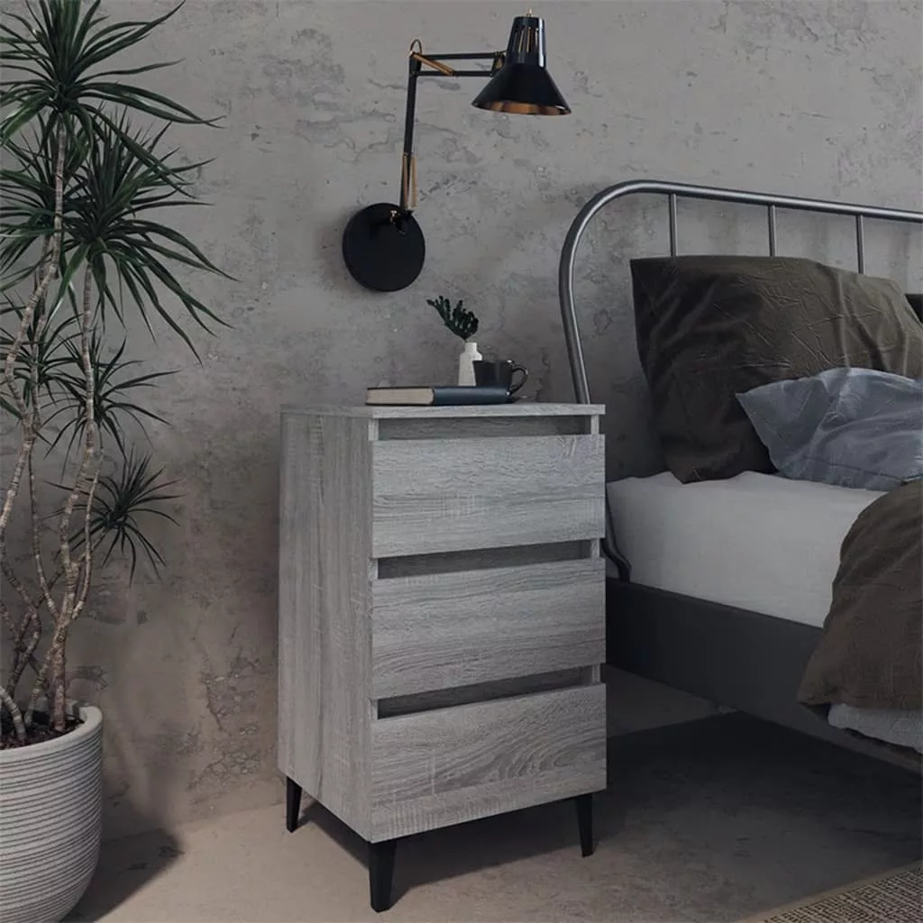 szürke sonoma színű éjjeliszekrény fémlábakkal 40 x 35 x 69 cm