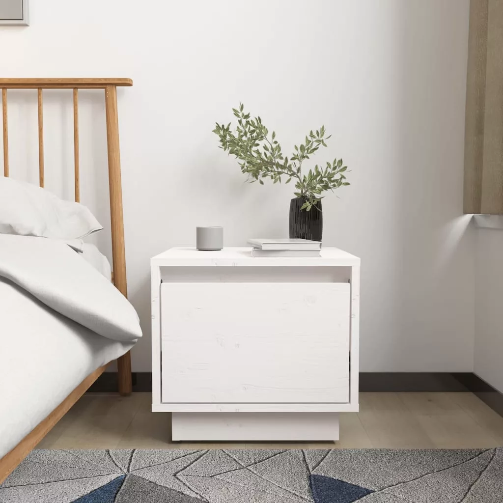 2 db fehér tömör fenyőfa éjjeliszekrény 35 x 34 x 32 cm