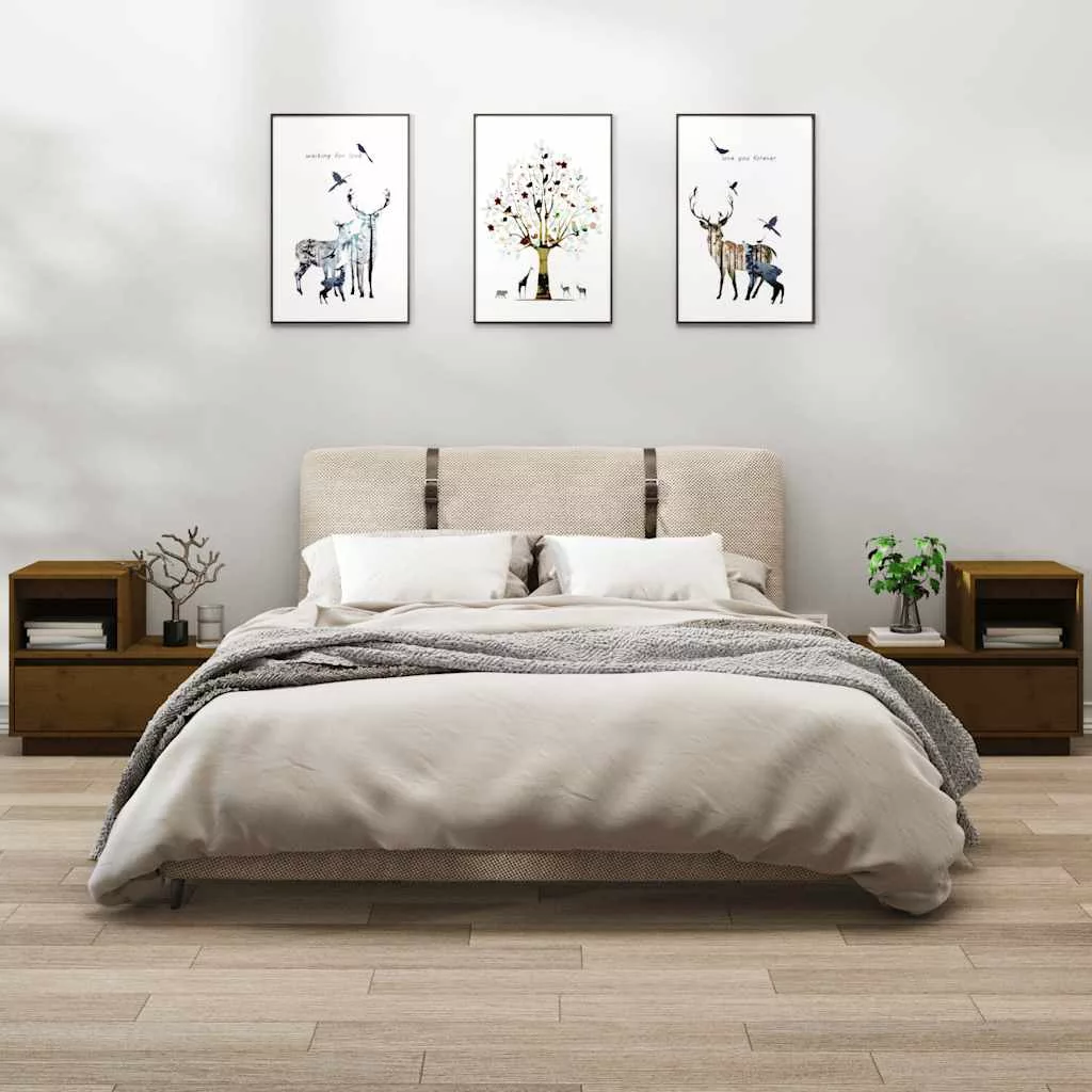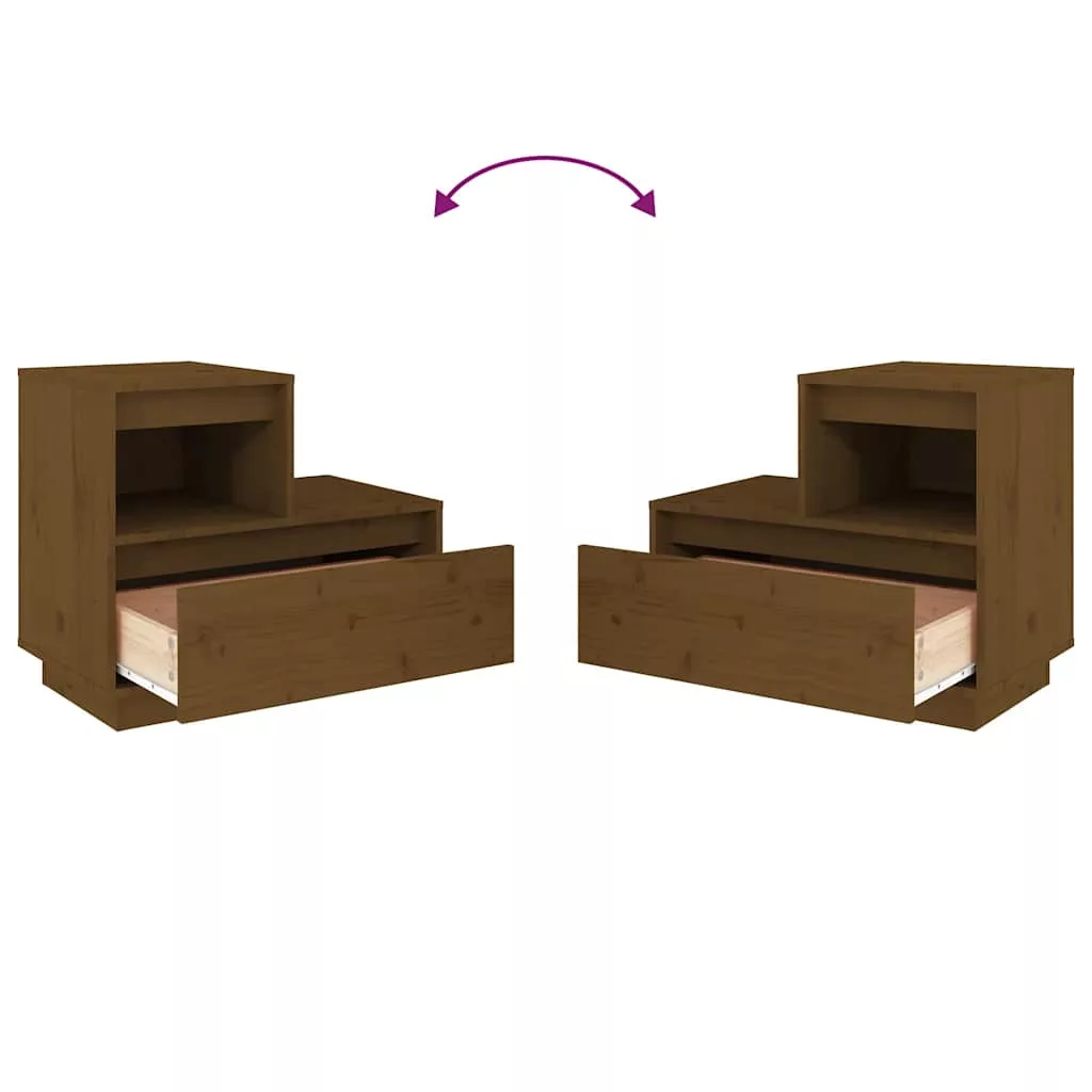 2 db mézbarna tömör fenyőfa éjjeliszekrény 60 x 34 x 51 cm