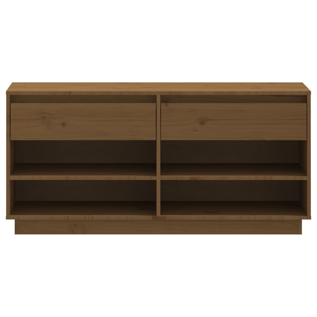 Ebben a finom és masszív fából készült cipősszekrényben hatékonyan tárolhatja cipőit, és praktikusan díszítheti vele otthonát. Tömör fenyőfa: A tömör fenyőfa egy gyönyörű természetes anyag. A fenyőfa erezete egyenes, a csomók pedig jellegzetes, rusztikus megjelenést kölcsönöznek az anyagnak.Stabil váz: A faváz erős szerkezetet és stabilitást biztosít.Bőséges tárolóhely: Ez a cipőszekrény 2 fiókkal és 4 rekesszel rendelkezik, így bőséges helyet kínál cipői és egyéb kellékek rendezett tárolására.Masszív lap: A cipőszekrény felső lapját használhatja kedvenc dísztárgyai elhelyezésére. Figyelem:A dőlés megakadályozása érdekében a terméket a mellékelt tartóelem segítségével rögzíteni kell a falhoz. Megjegyzés:Az egyszerű összeszerelés érdekében minden termékhez mellékelünk összeszerelési útmutatót.