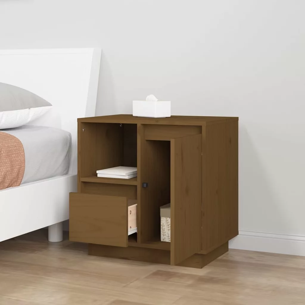 Ezek az elegáns kialakítású éjjeliszekrények otthona időtálló kiegészítői lesznek. Tömör fenyőfa: A tömör fenyőfa egy gyönyörű természetes anyag. A fenyőfa erezete egyenes, a csomók adják az anyag jellegzetes, rusztikus megjelenését.Bőséges tárolóhely: Az éjjeliszekrény kényelmes helyet biztosít magazinjai, könyvei, távirányítói és egyéb apró tárgyai kézközelben történő rendezett tárolásához.Stabil lap: Stabil lapjára dísztárgyakat, például képkereteket és cserepes növényeket is helyezhet. Megjegyzés:Az egyszerű összeszerelés érdekében minden termékhez mellékelünk összeszerelési útmutatót.Figyelem:A dőlés megakadályozása érdekében a terméket a mellékelt tartóelem segítségével rögzíteni kell a falhoz.
