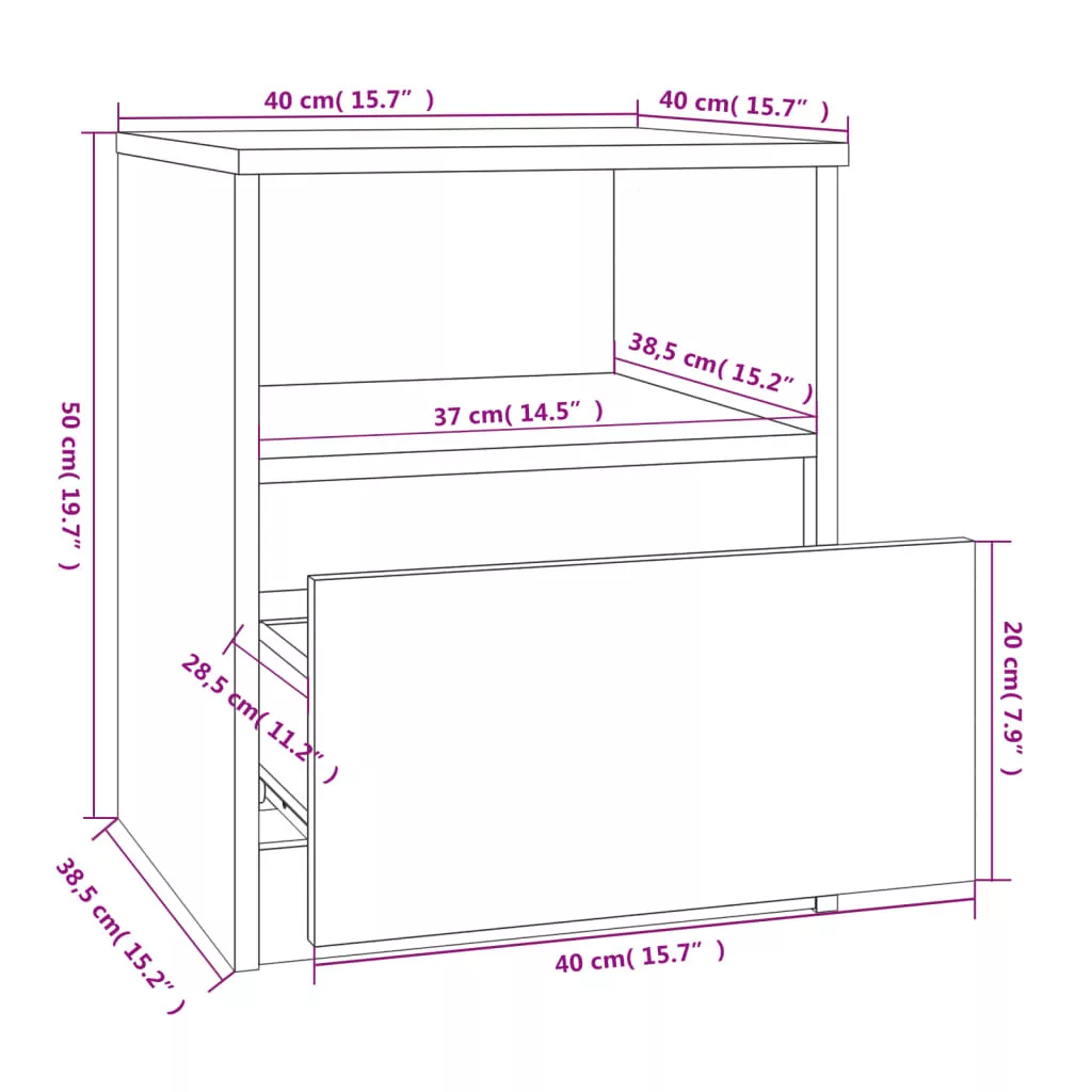 Ez a divatos, mégis praktikus kialakítású éjjeliszekrény garantáltan a helyiség fénypontja lesz. Prémium minőségű anyag: A szerelt fa kivételes minőségű, sima felületű, szilárd, stabil és ellenáll a nedvességnek.Bőséges tárolóhely: Az éjjeliszekrény 1 fiókkal és 1 rekesszel van felszerelve, így bőséges helyet biztosít távirányítói és egyéb apró tárgyai kézközelben történő rendezett tárolásához.Többfunkciós szekrény: Masszív teteje ideális dísztárgyak, képkeretek vagy cserepes növények elhelyezésére. Kisszekrényként, végasztalként stb. is használható. FIGYELEM:A dőlés megakadályozása érdekében a terméket a mellékelt tartóelem segítségével rögzíteni kell a falhoz. Megjegyzés:Az egyszerű összeszerelés érdekében minden termékhez mellékelünk összeszerelési útmutatót.