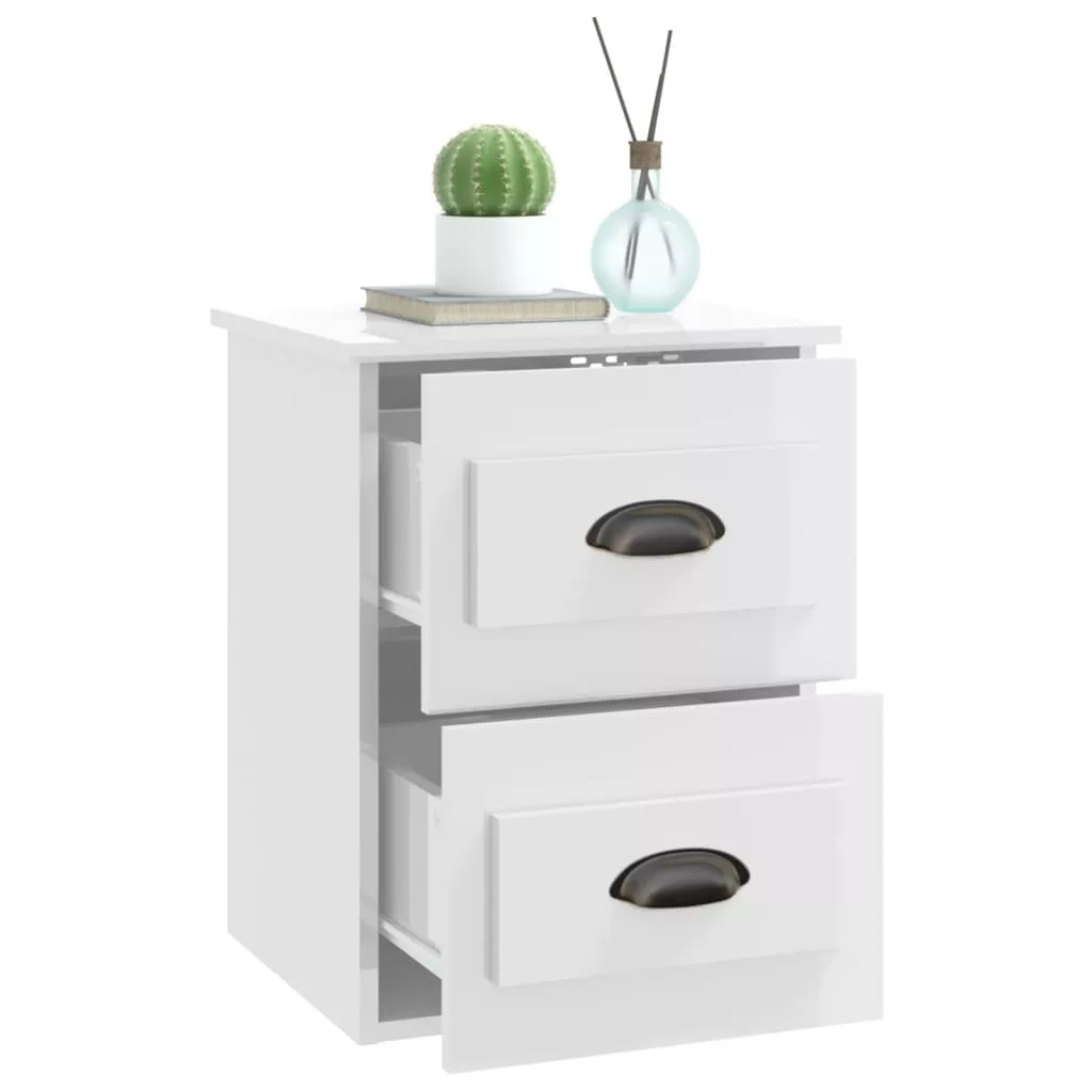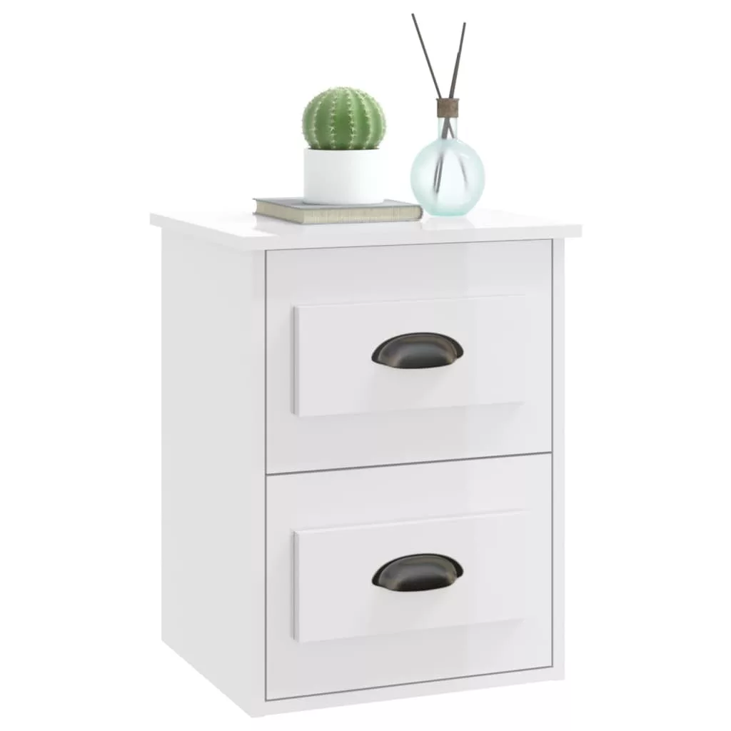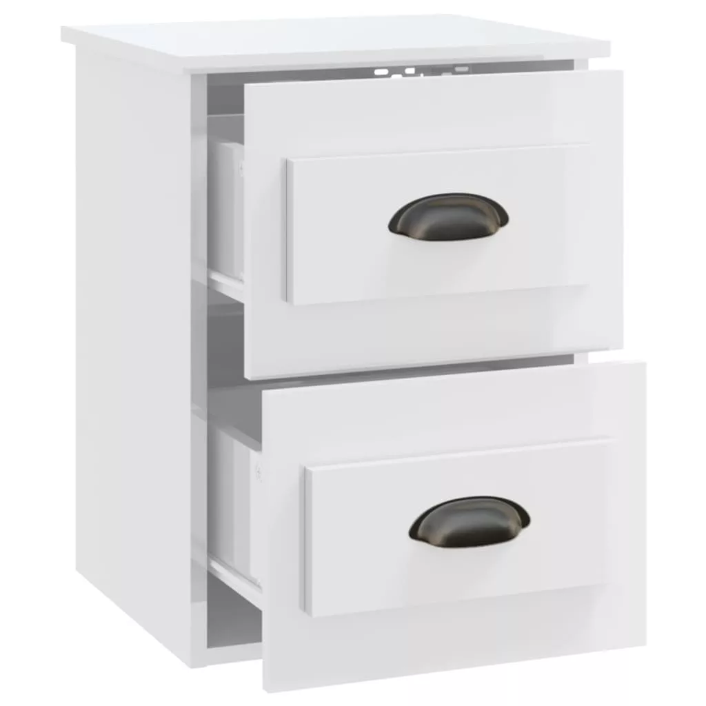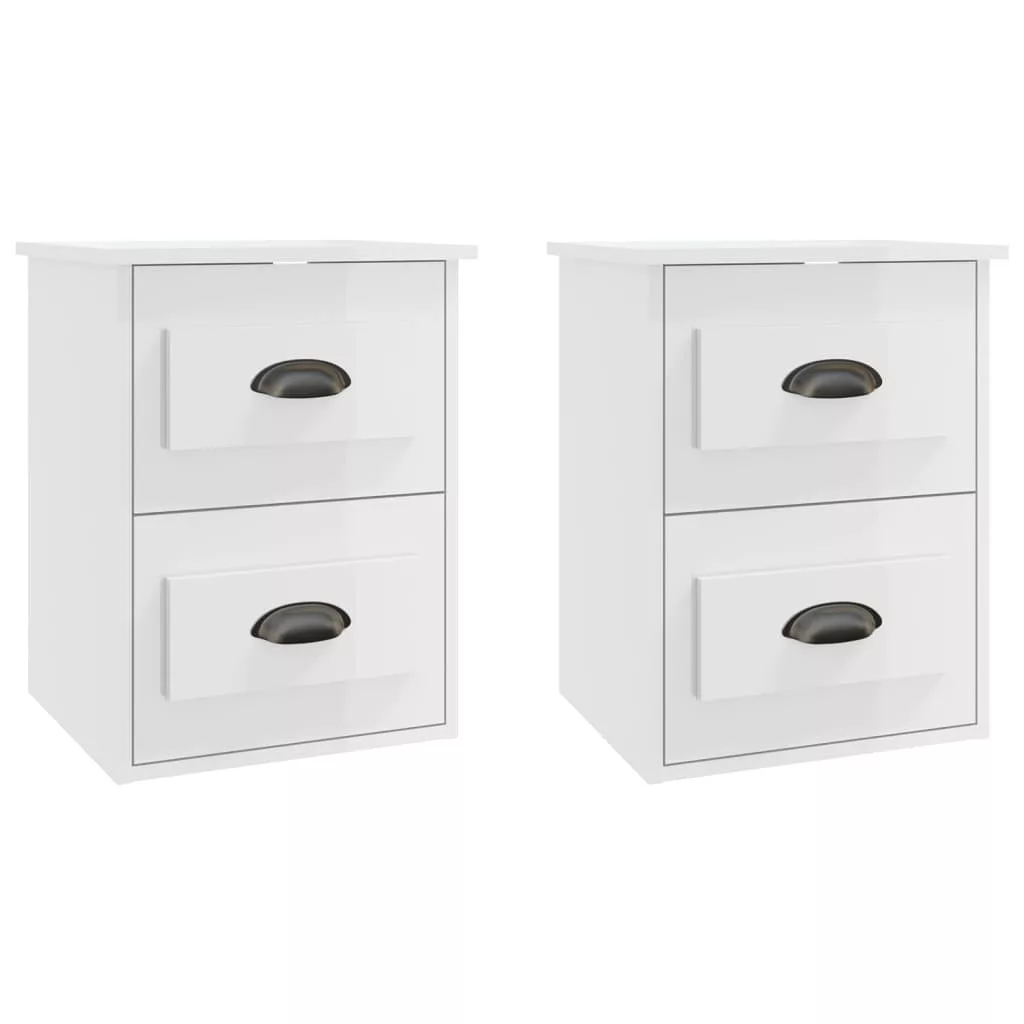 2 db magasfényű fehér fali éjjeliszekrény 41,5 x 36 x 53 cm