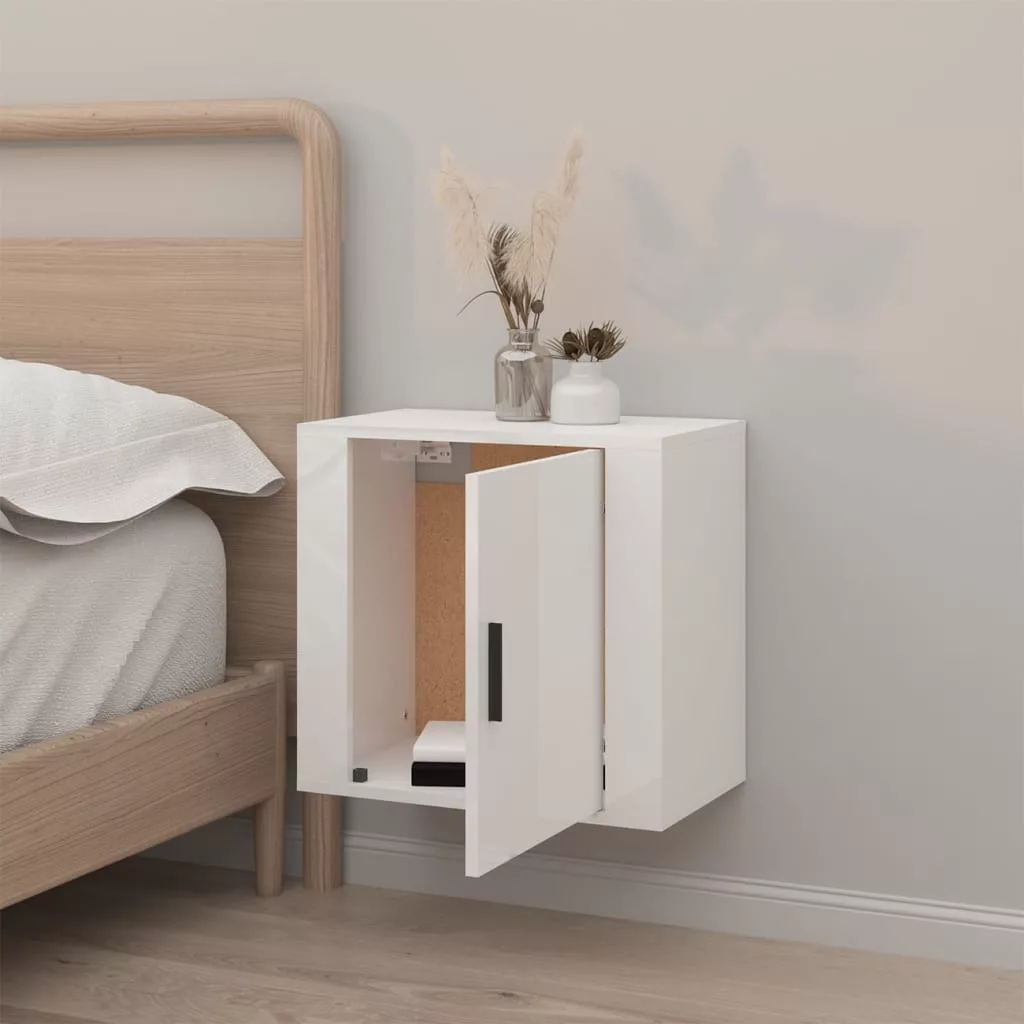 magasfényű fehér falra szerelhető éjjeliszekrény 50x30x47 cm