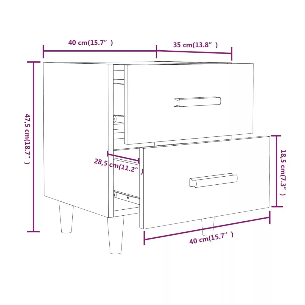 2 db füstös tölgy színű éjjeliszekrény 40 x 35 x 47,5 cm