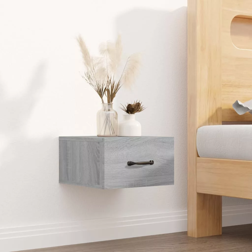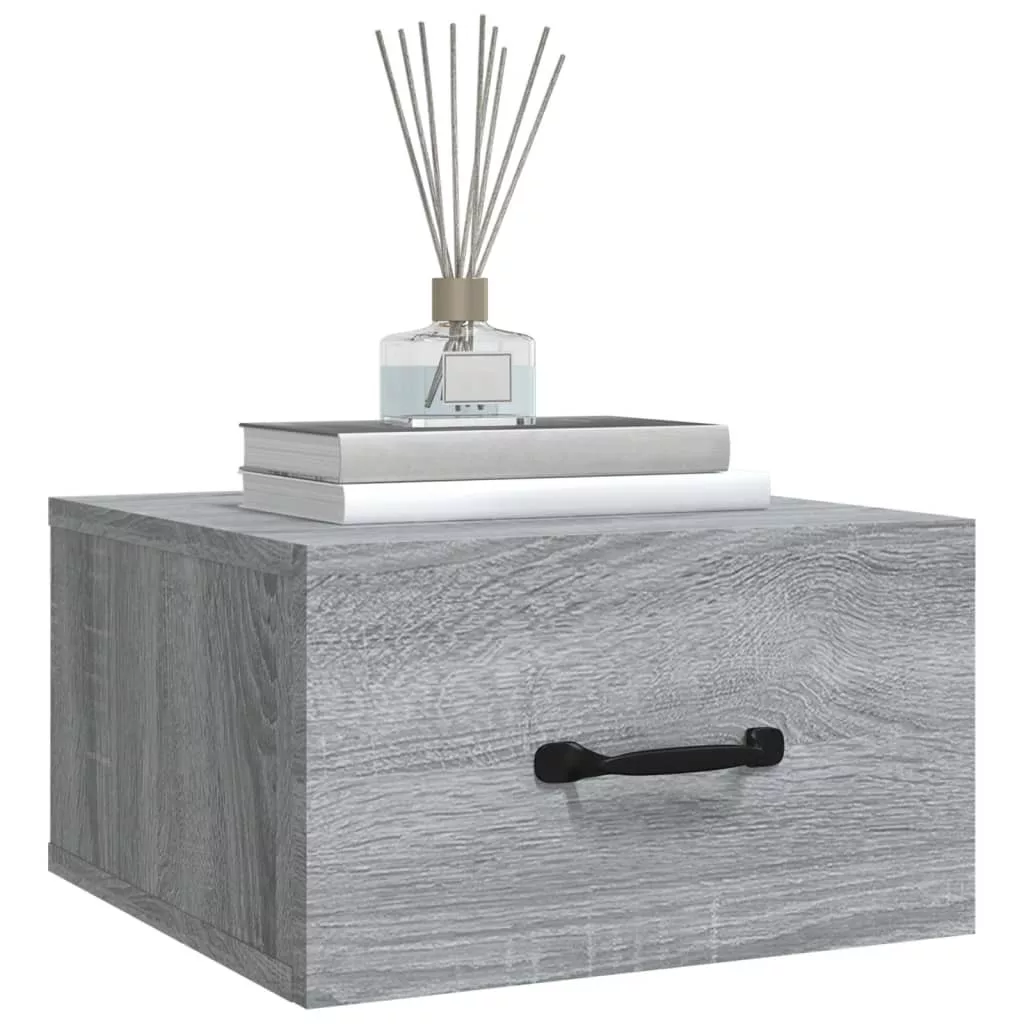 szürke sonoma falra szerelhető éjjeliszekrény 35x35x20 cm