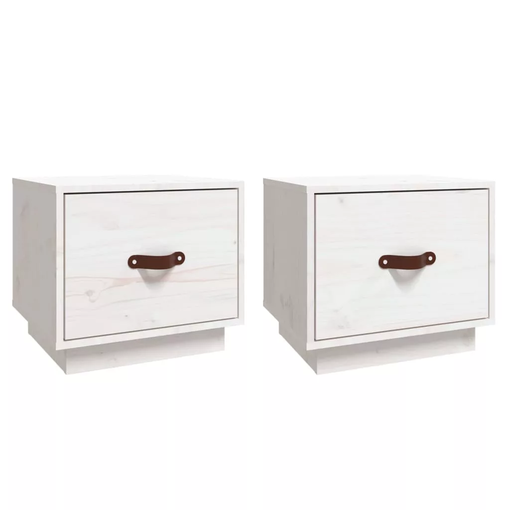 2 db fehér tömör fenyőfa éjjeliszekrény 40 x 34 x 35 cm