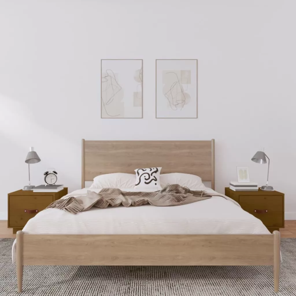 2 db mézbarna tömör fenyőfa éjjeliszekrény 40 x 34 x 35 cm
