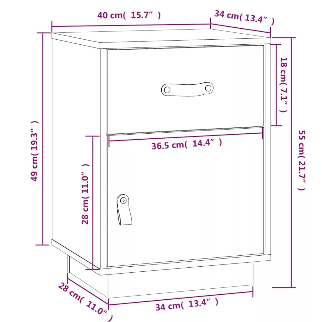 fehér tömör fenyőfa éjjeliszekrény 40 x 34 x 55 cm