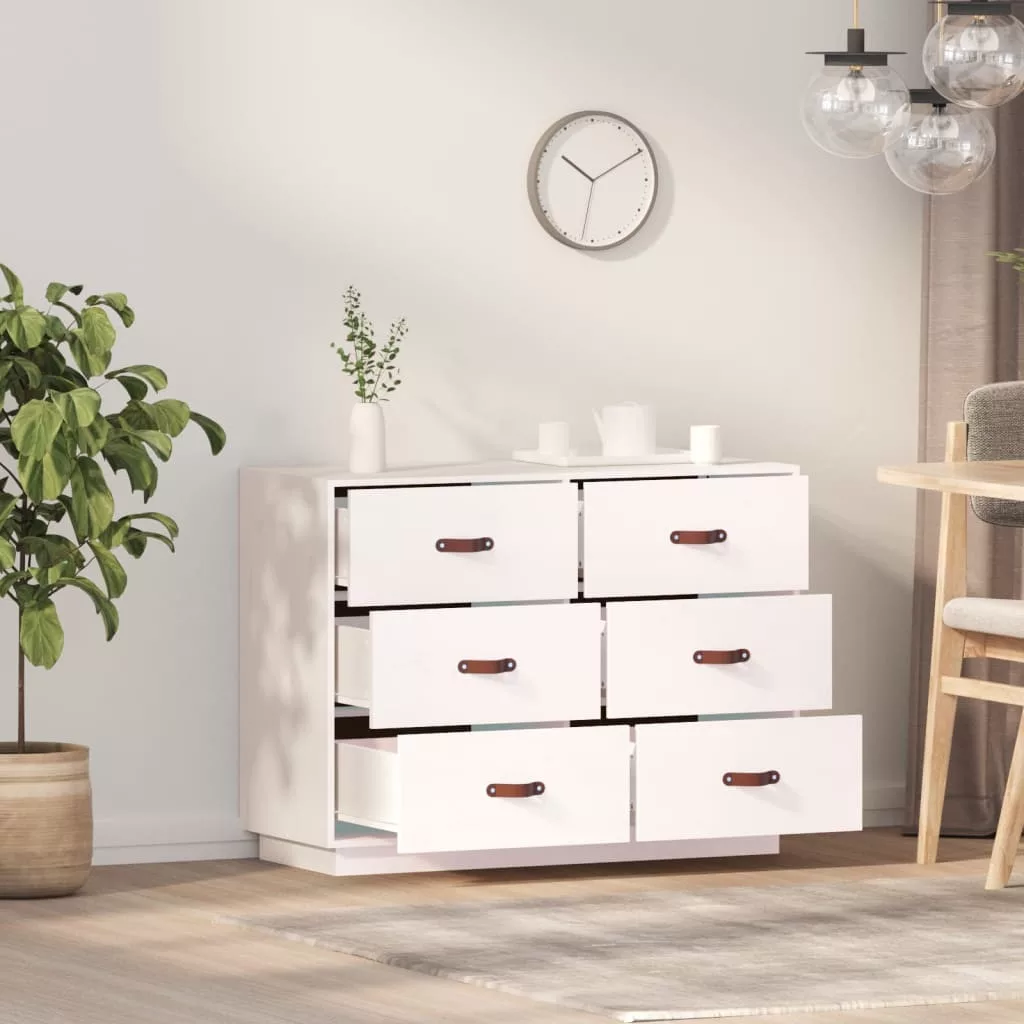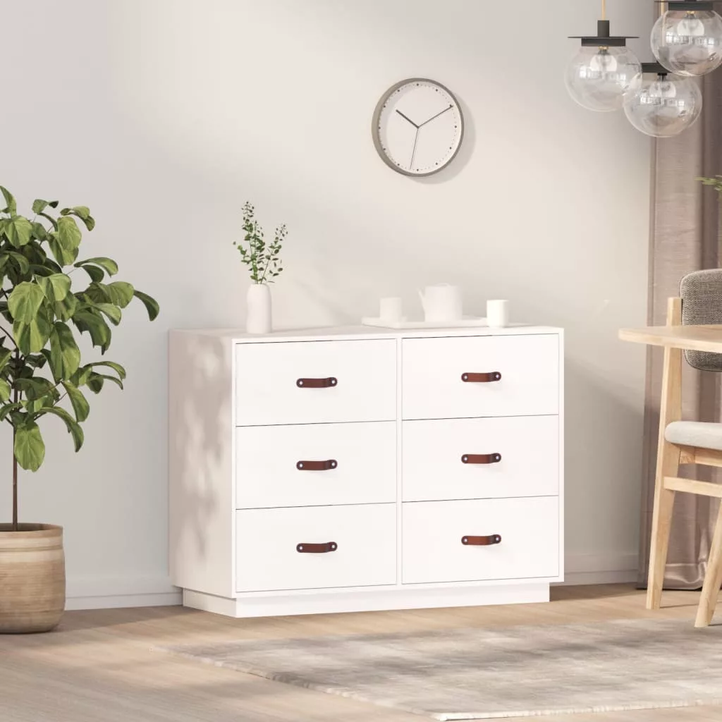 Ez a fa tálalószekrény számos igényét kielégíti, és a helyiség kiváló kiegészítője lesz. Tömör fenyőfa: A tömör fenyőfa egy gyönyörű természetes anyag. A fenyőfa erezete egyenes, a csomók pedig jellegzetes, rusztikus megjelenést kölcsönöznek az anyagnak.Stabil váz: A faváz erős szerkezetet és stabilitást biztosít.Bőséges tárolóhely: A tálalószekrény 6 fiókkal rendelkezik, így elegendő tárolóhelyet kínál holmijai rendezett és kézközelben történő tárolásához.Masszív asztallap: A kisasztal lapja tökéletes dísztárgyai, képkeretei és cserepes növényei elhelyezésére. Figyelem:A dőlés megakadályozása érdekében a terméket a mellékelt tartóelem segítségével rögzíteni kell a falhoz. Megjegyzés:Az egyszerű összeszerelés érdekében minden termékhez mellékelünk összeszerelési útmutatót.