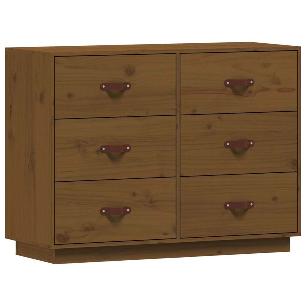 Ez a fa tálalószekrény számos igényét kielégíti, és a helyiség kiváló kiegészítője lesz. Tömör fenyőfa: A tömör fenyőfa egy gyönyörű természetes anyag. A fenyőfa erezete egyenes, a csomók pedig jellegzetes, rusztikus megjelenést kölcsönöznek az anyagnak.Stabil váz: A faváz erős szerkezetet és stabilitást biztosít.Bőséges tárolóhely: A tálalószekrény 6 fiókkal rendelkezik, így elegendő tárolóhelyet kínál holmijai rendezett és kézközelben történő tárolásához.Masszív asztallap: A kisasztal lapja tökéletes dísztárgyai, képkeretei és cserepes növényei elhelyezésére. Figyelem:A dőlés megakadályozása érdekében a terméket a mellékelt tartóelem segítségével rögzíteni kell a falhoz. Megjegyzés:Az egyszerű összeszerelés érdekében minden termékhez mellékelünk összeszerelési útmutatót.