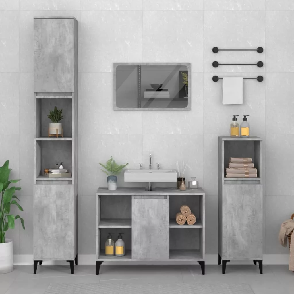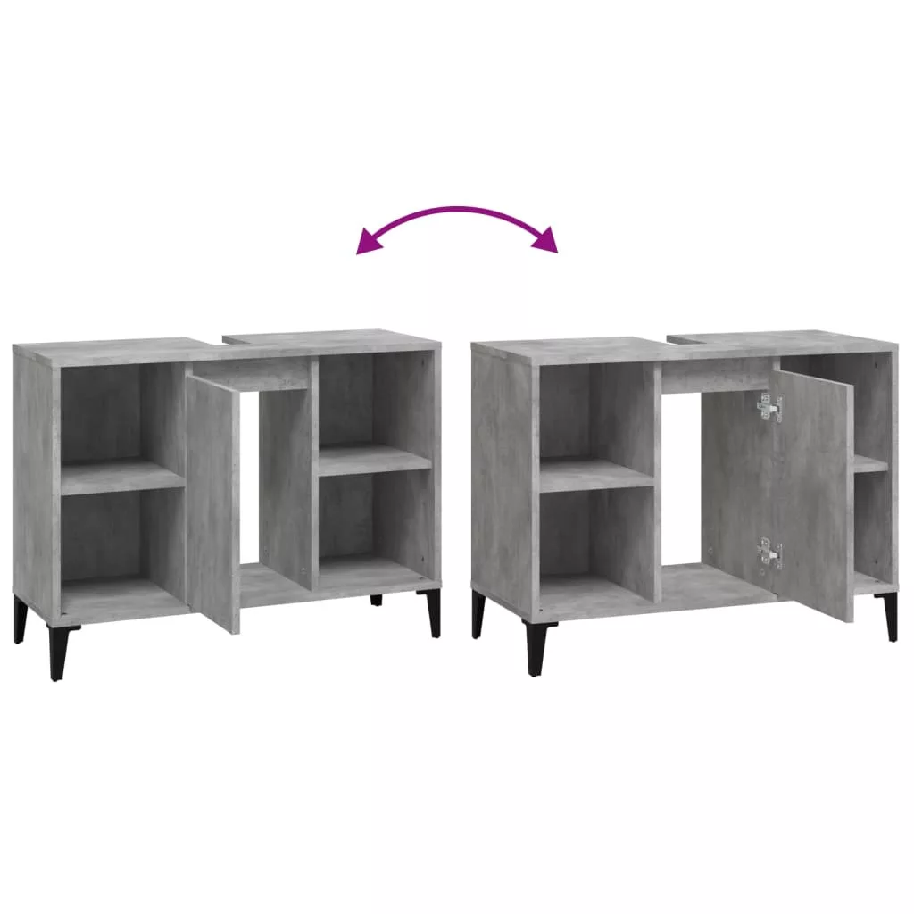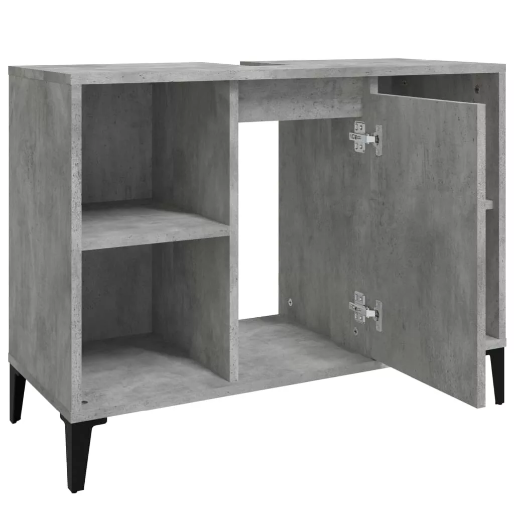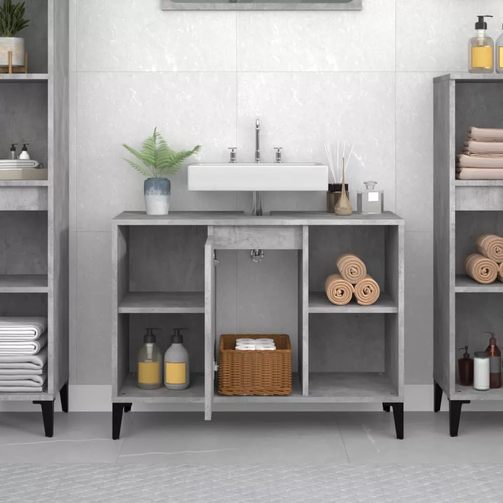 Ez a mosdószekrény fürdőszobája nagyszerű kiegészítője lesz, rendezett és lenyűgöző megjelenést kölcsönözve neki! Tartós anyag: A szerelt fa kivételes minőségű, sima felületű, szilárd, stabil, és ellenáll a nedvességnek.Bőséges tárolóhely: A fürdőszobai mosdószekrény 5 rekesszel és egy ajtóval rendelkezik, amelyek különféle tárolási lehetőségeket és extra helyet kínálnak a fürdőszobában lévő tárgyak tárolására. A fürdőszobaszekrény teteje ideális a mosdókagyló elhelyezésére.Fémlábak: A fémlábak modern és nyugodt stílust kölcsönöznek a belső térnek, miközben stabilitást biztosítanak.Könnyen tisztítható felület: A fürdőszobabútor nedves ruhával könnyen tisztítható. Figyelem:A felborulás elkerülése érdekében ezt a terméket a mellékelt fali rögzítőeszközzel kell használni. Jó tudni:A szerelés megkönnyítése érdekében minden termék kézikönyvvel együtt kerül kiszállításra.A szállítás a mosdókagylót nem tartalmazza.