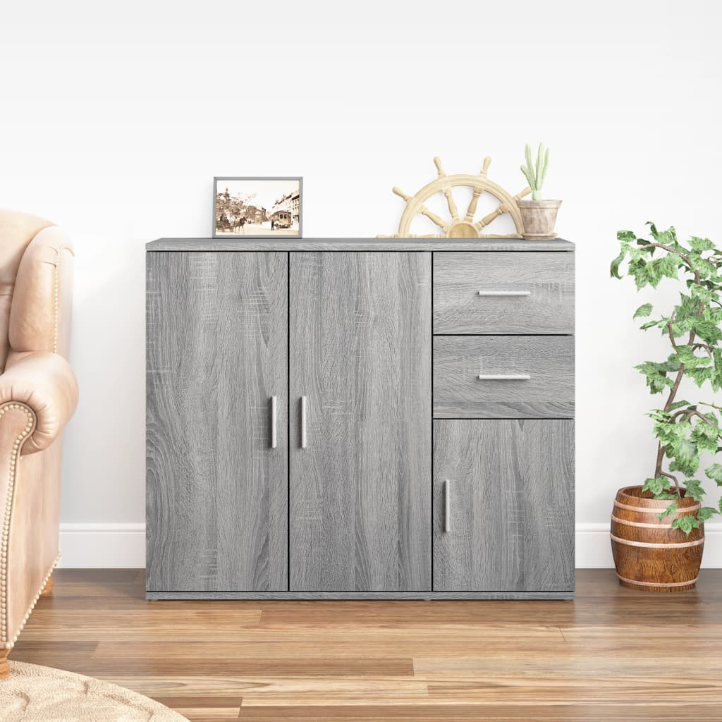szürke sonoma színű szerelt fa tálalószekrény 91x29,5x75 cm