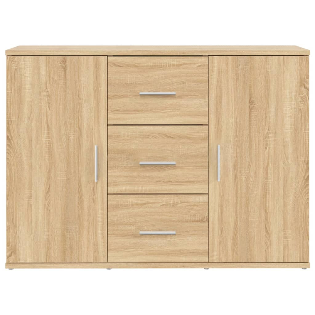 Ez a minimalista stílusú komód nemcsak praktikus, hanem igen dekoratív kiegészítője lesz otthonának Tartós anyag: A szerelt fa kivételes minőségű, sima felületű, szilárd, stabil, és ellenáll a nedvességnek.Bőséges tárolóhely: A 2 ajtóval és 3 fiókkal ellátott tálalószekrény bőséges tárolóhelyet nyújt könyvek, multimédiás eszközök és egyéb tárgyak tárolásához.Praktikus felső lap: A masszív lap ideális dísztárgyak, képkeretek vagy cserepes növények elhelyezésére. Megjegyzés:Az egyszerű összeszerelés érdekében minden termékhez mellékelünk összeszerelési útmutatót. Figyelem:A dőlés megakadályozása érdekében a terméket a mellékelt tartóelem segítségével rögzíteni kell a falhoz.