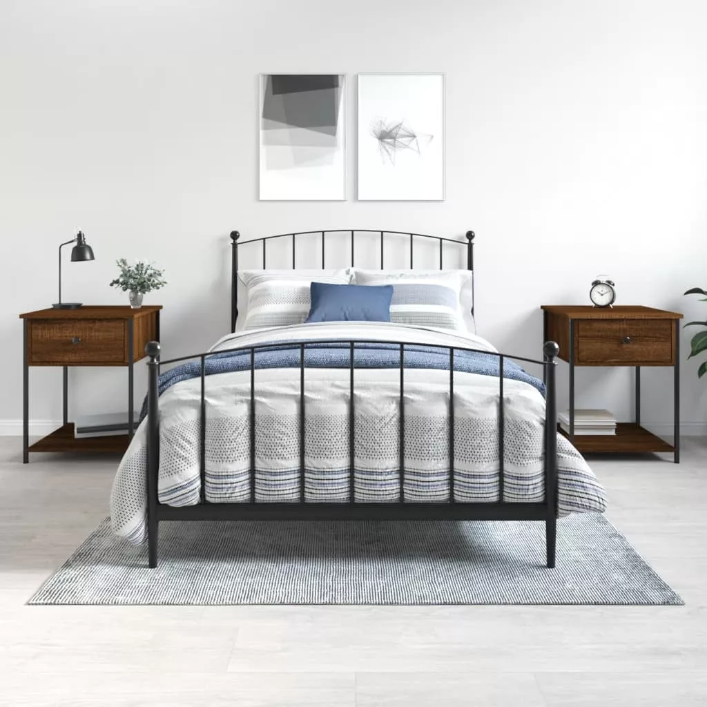 2 db barna tölgy színű szerelt fa éjjeliszekrény 44x45x58 cm