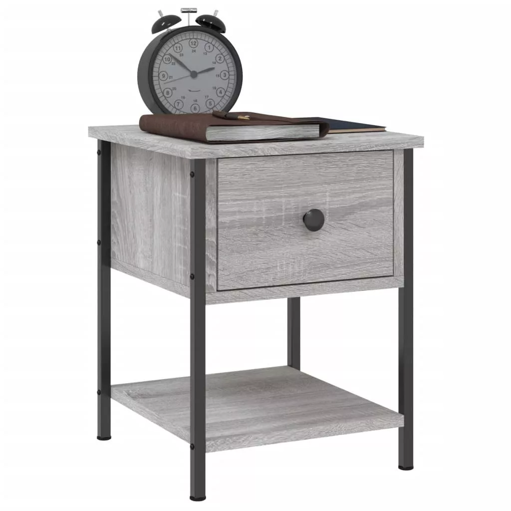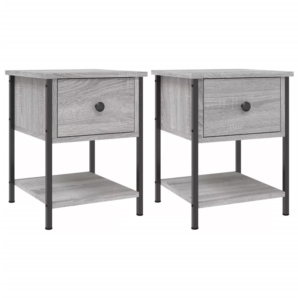 2 db szürke sonoma színű szerelt fa éjjeliszekrény 34x35,5x45cm