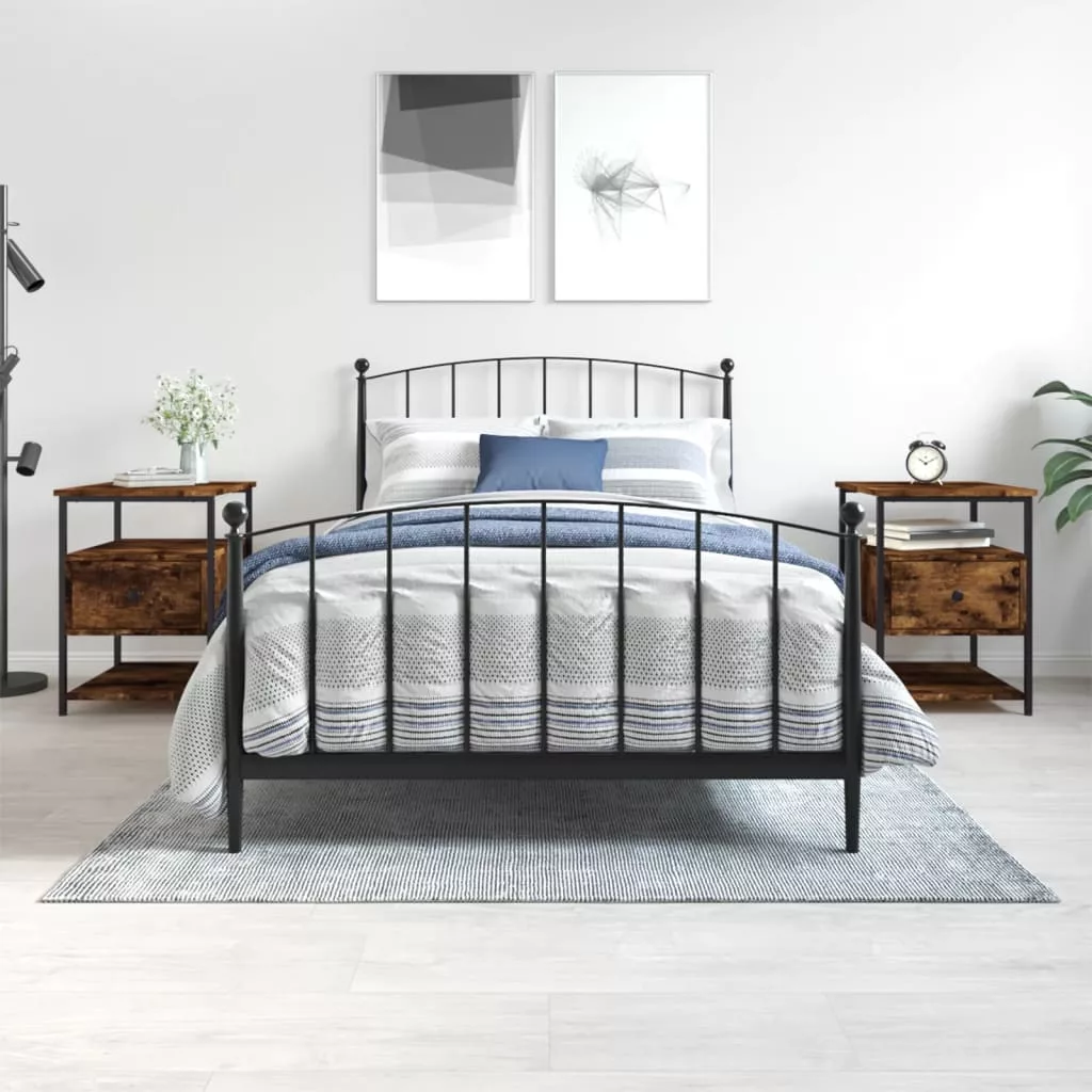 Ezek az egyszerű és kompakt dizájnnal ellátott éjjeliszekrények könnyen illeszkednek hálószobájába vagy nappalijába, és időtlen bájt kölcsönöznek a belső térnek. Tartós anyag: A szerelt fa kivételes minőségű, sima felületű, szilárd, stabil, és ellenáll a nedvességnek. Masszív váz: A vasváz erős szerkezetet és stabilitást biztosít.Bőséges tárolóhely: A kisasztal bőséges helyet biztosít alapvető holmijai kézközelben történő rendezett tárolásához.Bemutatófunkció: Kedvenc fotóit, dekorációit vagy virágait is elhelyezheti a kisasztal tetején a szoba dekorációjának gazdagítása érdekében.Állítható láb: A négy, műanyag talppal ellátott láb egyensúlyban tartja a kisszekrényt az egyenetlen talajon, valamint fokozza a stabilitást. Figyelem:A felborulás elkerülése érdekében ezt a terméket a mellékelt fali rögzítőeszközzel kell használni.