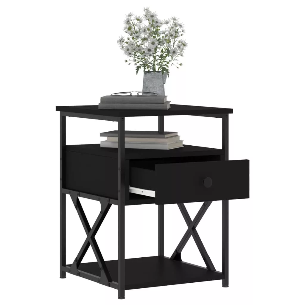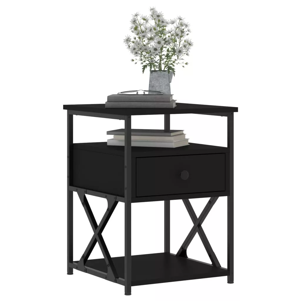 2 db fekete szerelt fa éjjeliszekrény 40x42x55 cm