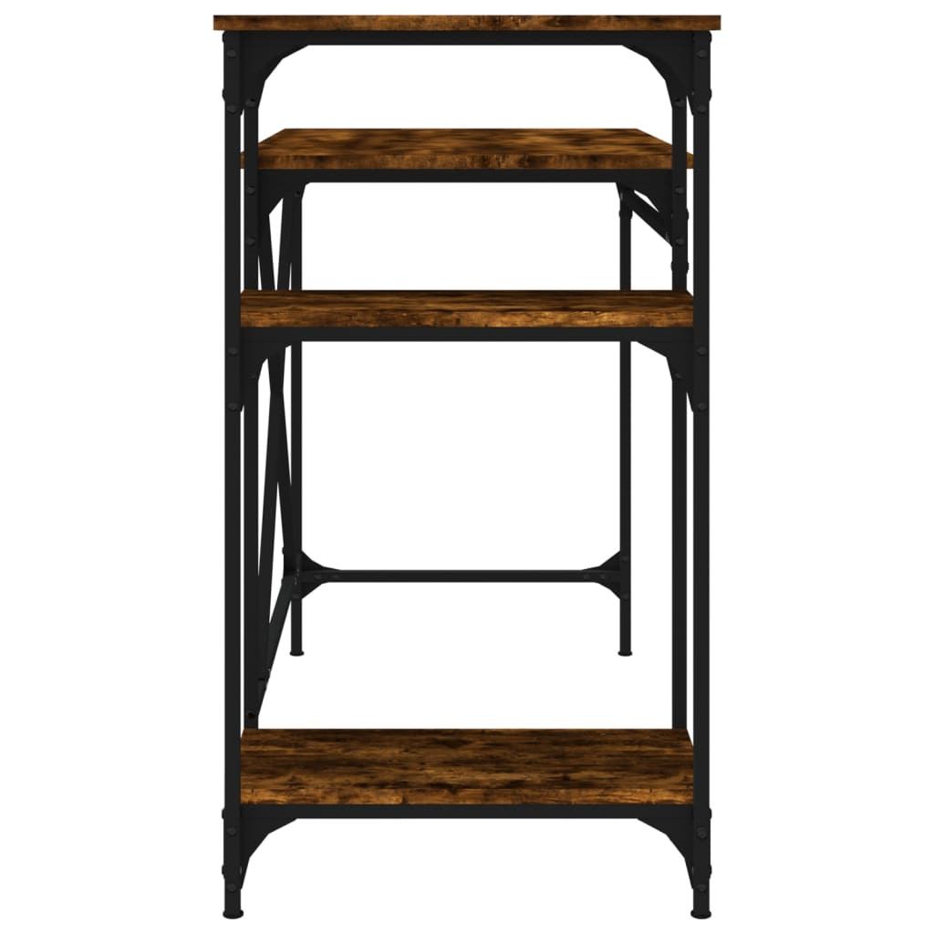 füstös tölgy szerelt fa és vas íróasztal polcokkal 105x50x90 cm
