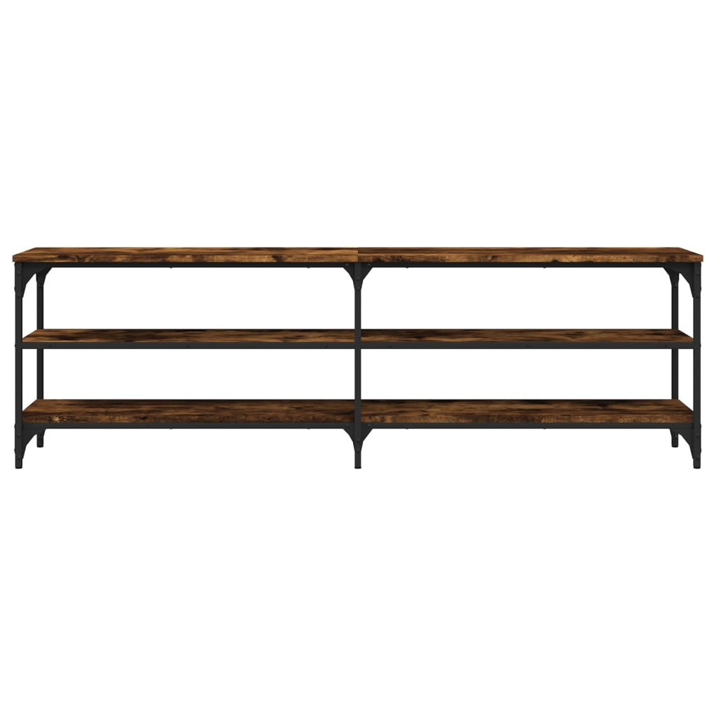 Ez az ipari stílusú TV-szekrény egy csipetnyi vintage bájt csempész otthonába! Tartós anyag: A szerelt fa kivételes minőségű, sima felületű, szilárd, stabil, és ellenáll a nedvességnek.Nyitott tárolópolcok: A TV-állvány 3 nyitott polccal rendelkezik, melyek tökéletesek vevőkészülékek, DVD-k és játékkonzolok elhelyezésére.Stabil váz: A tálaló vas váza erős szerkezetet és stabilitást biztosít.Állítható lábak: A TV-szekrény 4 állítható lábbal van felszerelve, amelyek megvédik a padlót a karcolásoktól, és stabilan tartják azt a kissé egyenetlen padlón.Bemutatófunkció: A TV-bútor masszív teteje ideális dekorációs elemek, például képkeretek és növények megjelenítésére. Figyelem:A felborulás elkerülése érdekében ezt a terméket a mellékelt fali rögzítőeszközzel kell használni.