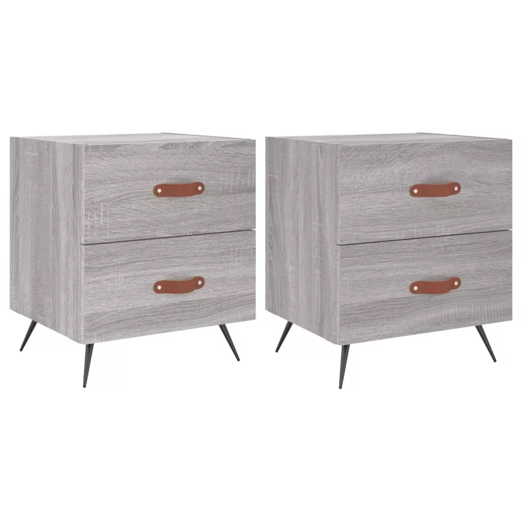 2 db szürke sonoma színű szerelt fa éjjeliszekrény 40x35x47,5cm