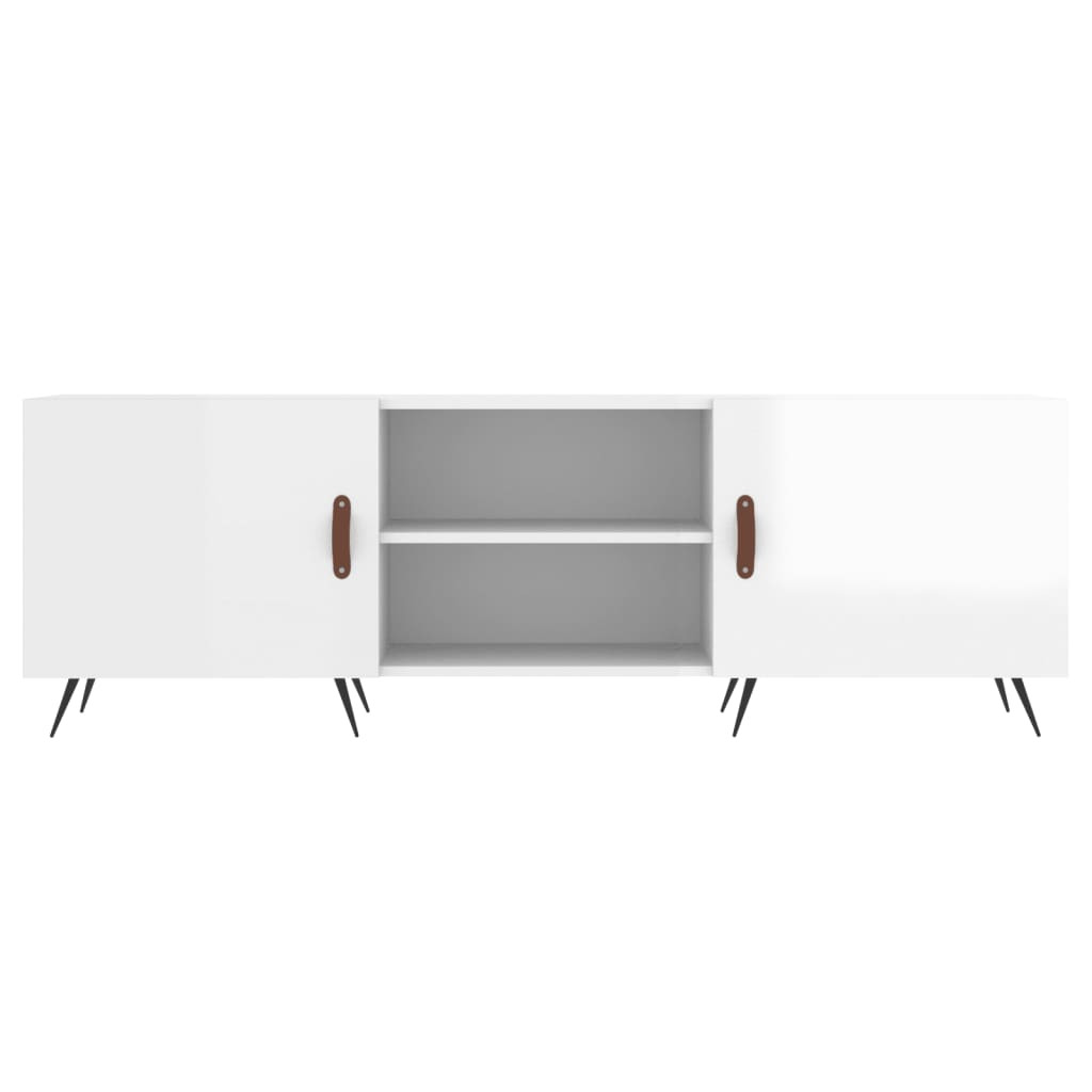 Ez a masszív TV-szekrény divatos, mégis praktikus kialakításával garantáltan szobája gyöngyszeme lesz. Masszív anyag: A szerelt fa kivételes minőségű, sima felületű, szilárd, stabil, és ellenáll a nedvességnek. A szerelt fából készült TV-szekrény könnyen tisztítható.Tágas tárolóhely: A TV-egység 4 rekesszel rendelkezik, így ideális magazinok, DVD-k és egyebek tárolására.Bemutatófunkció: A médiaszekrény masszív teteje ideális dekorációs elemek, például képkeretek és növények megjelenítésére.Praktikus ajtó: Tartsa pormentesen legfontosabb dolgait a médiabútor ajtajai mögé rejtve őket.Vaslábak: A vaslábak visszafogott stílust kölcsönöznek otthonának, ráadásul a stabilitásról is gondoskodnak. Figyelem:A dőlés megakadályozása érdekében a terméket a mellékelt tartóelem segítségével rögzíteni kell a falhoz.