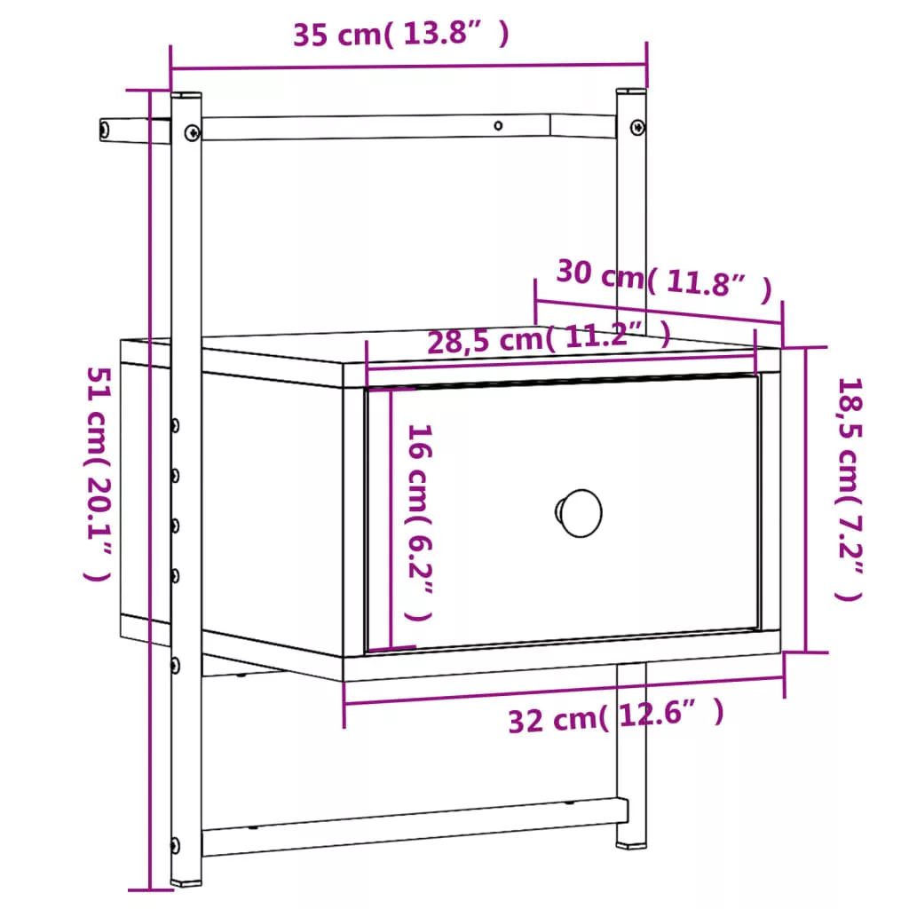 Ez a falra szerelhető éjjeliszekrény tökéletes megoldás otthonába a hely maximális kihasználására és a padló tisztán tartására. Tartós anyag: A szerelt fa kivételes minőségű, sima felületű, szilárd, stabil, és ellenáll a nedvességnek.Bőséges tárolóhely: Az éjjeliszekrény egy fiókkal lett ellátva holmijai elérhető közelségben történő rendezett tárolásához.Falra szerelhető kialakítás: Ez a lebegő éjjeliszekrény falra szerelhető, így extra tárolóhelyet biztosít. Ezáltal maximalizálhatja a padlóterületet, és tisztán tarthatja a környezetét.Stabil és robusztus asztallap: Az éjjeliszekrény teteje tökéletes dísztárgyak, képkeretek és cserepes növények elhelyezésére.Könnyen tisztítható: Az éjjeliszekrény nedves ruhával könnyen tisztítható. Jó tudni:A falon belüli csavarok és dugók nem alaptartozékok. Azt tanácsoljuk, hogy keressen és használjon kifejezetten az Ön falához megfelelő csavarokat és dugókat. Ha nem biztos benne, konzultálhat egy szakemberrel. Kérjük, olvassa el és kövesse az utasítások minden lépését.