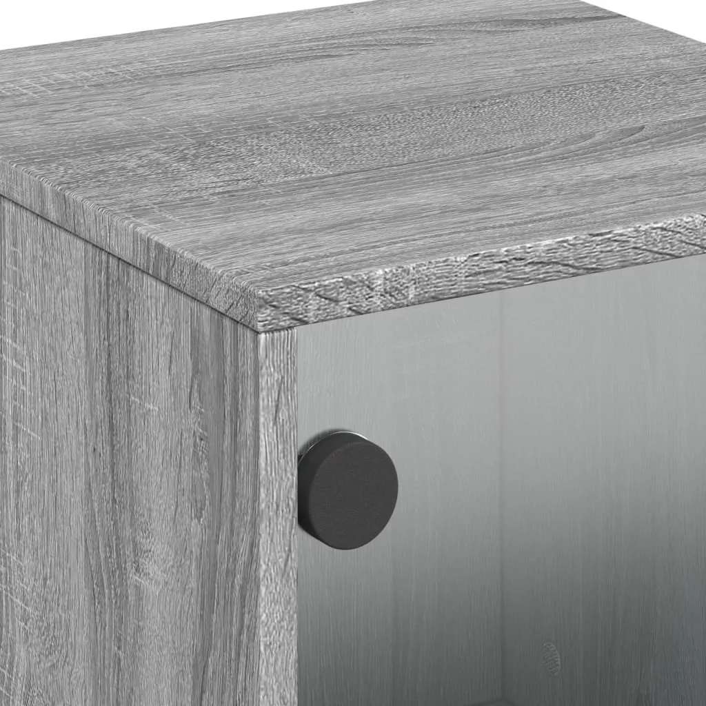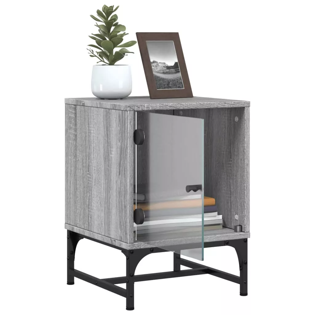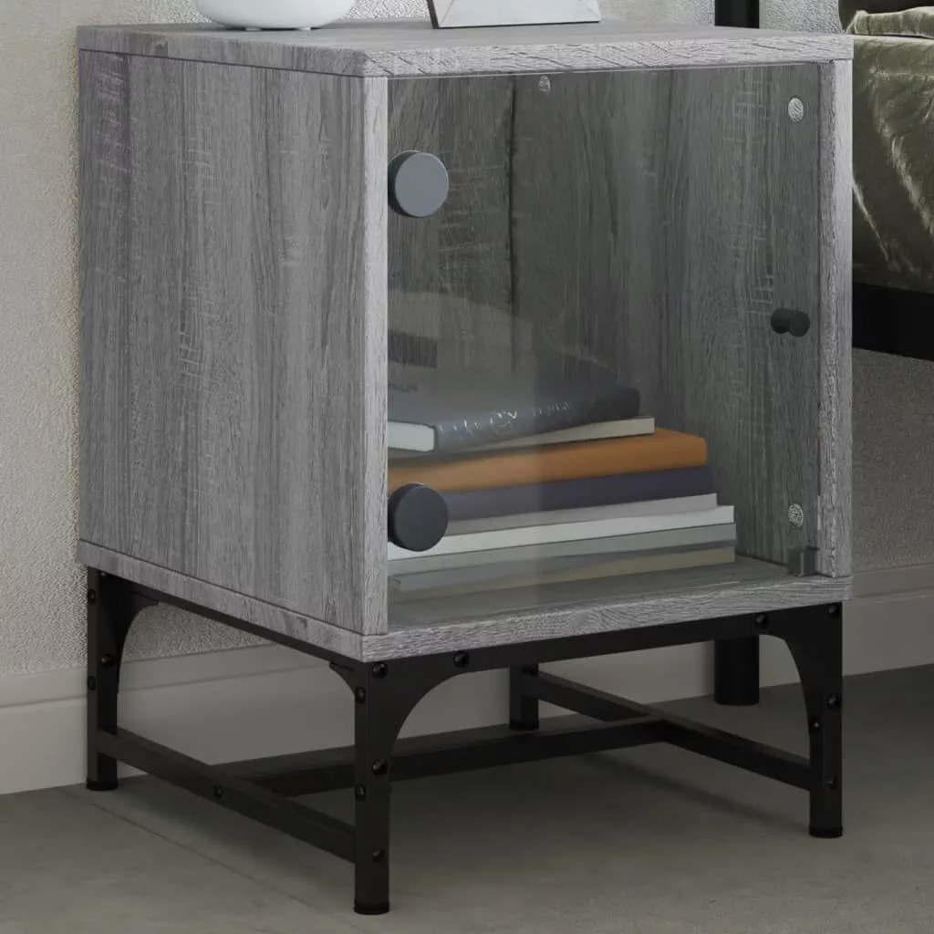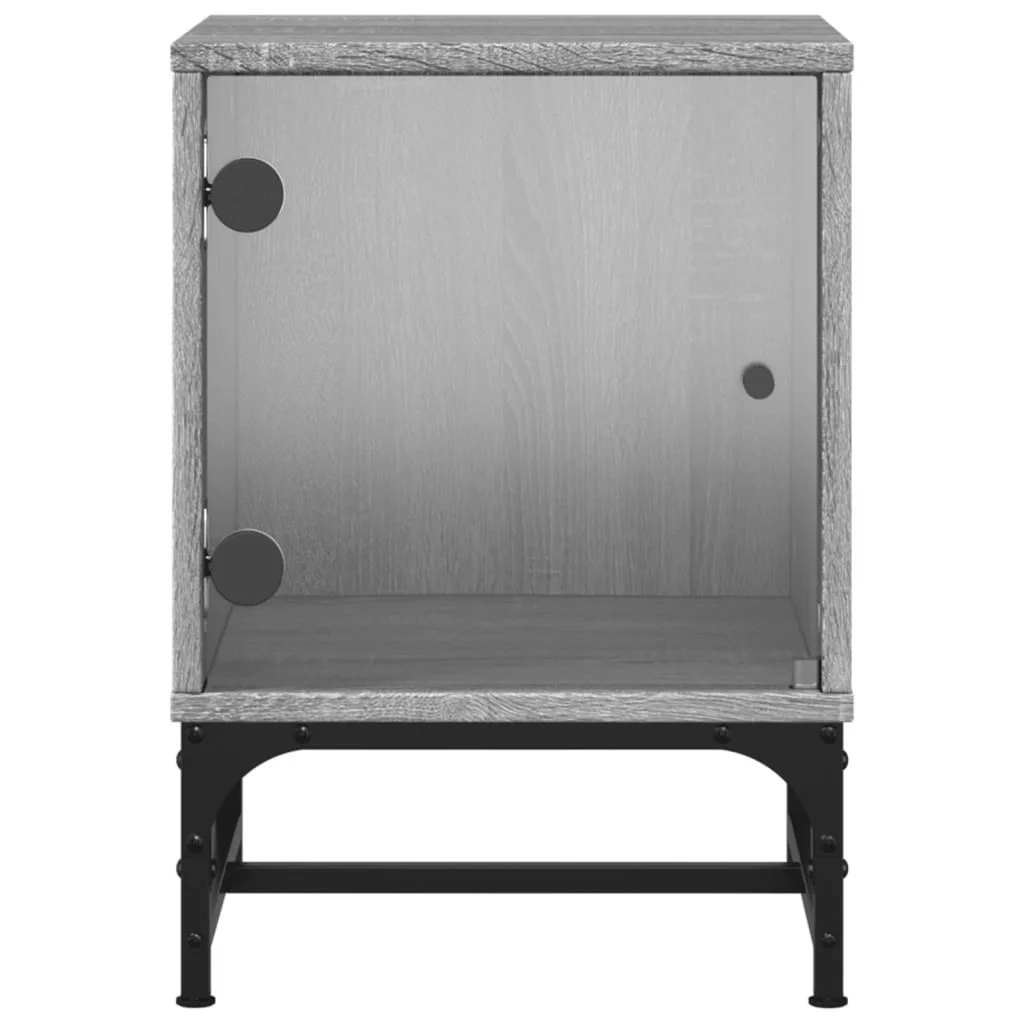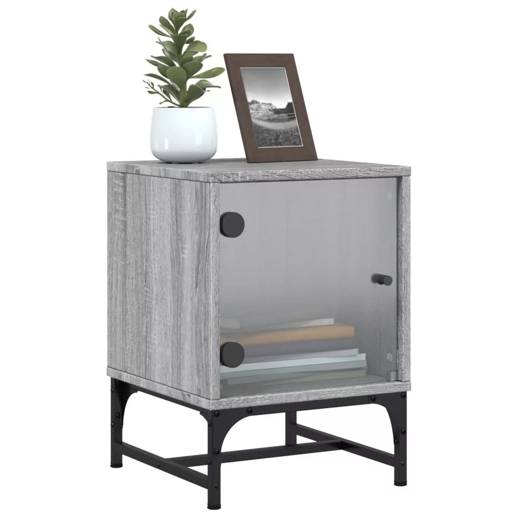 szürke sonoma színű éjjeliszekrény üvegajtóval 35 x 37 x 50 cm