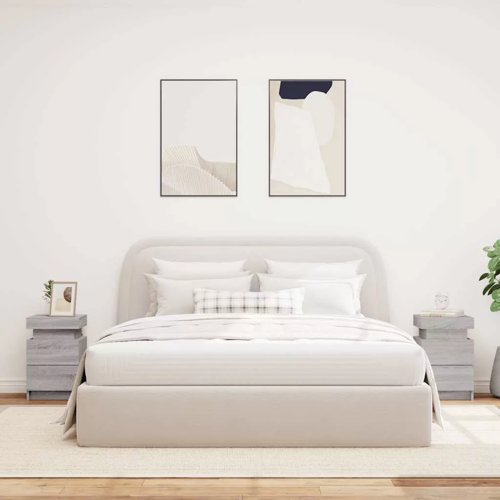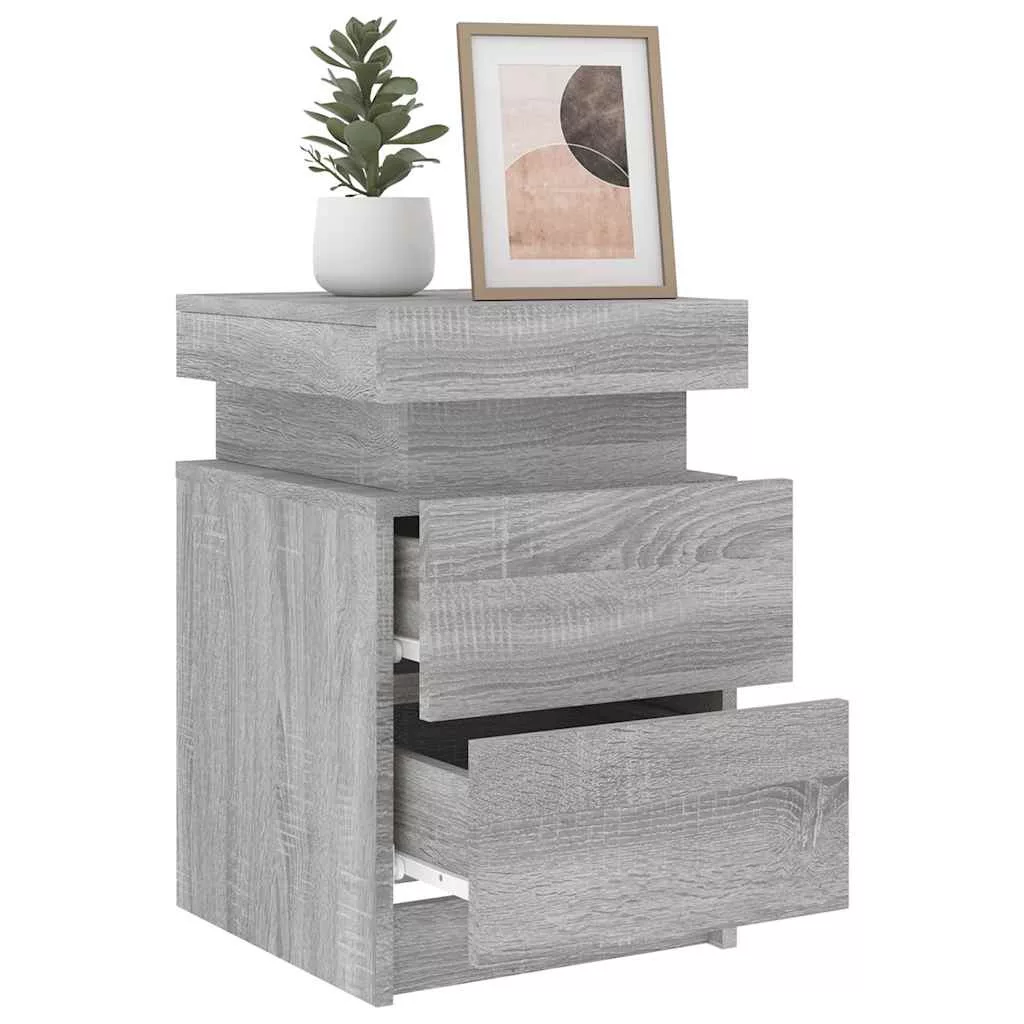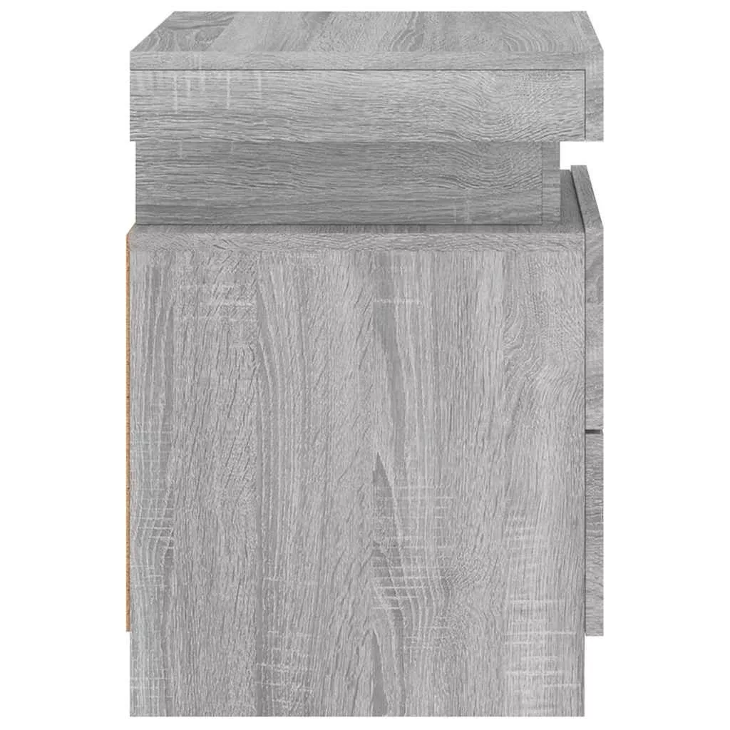 2 db szürke sonoma színű éjjeliszekrény LED-ekkel 35x39x55 cm