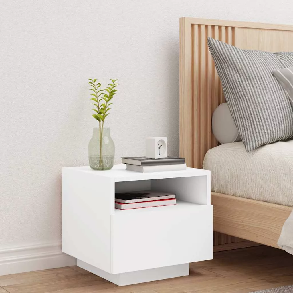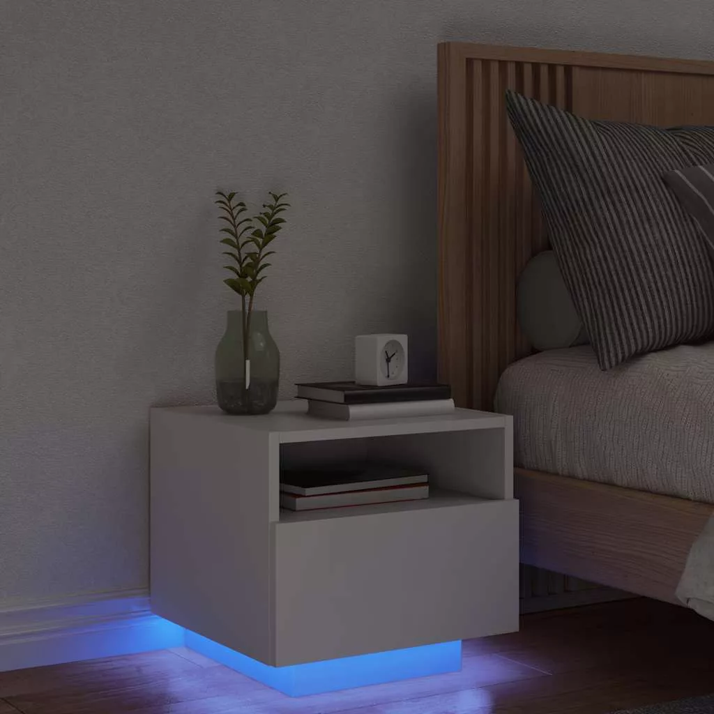fehér éjjeliszekrény LED-világítással 40 x 39 x 37 cm