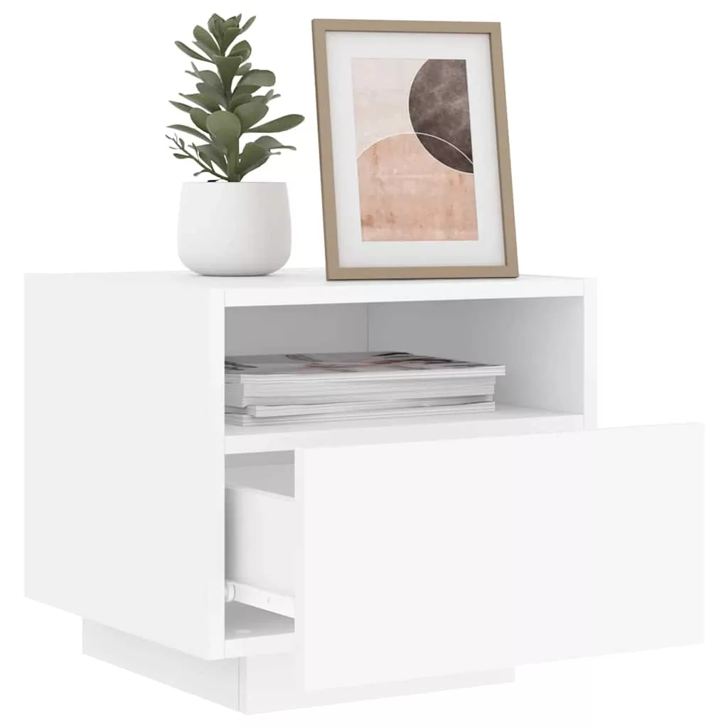 2 db fehér éjjeliszekrény LED-világítással 40 x 39 x 37 cm