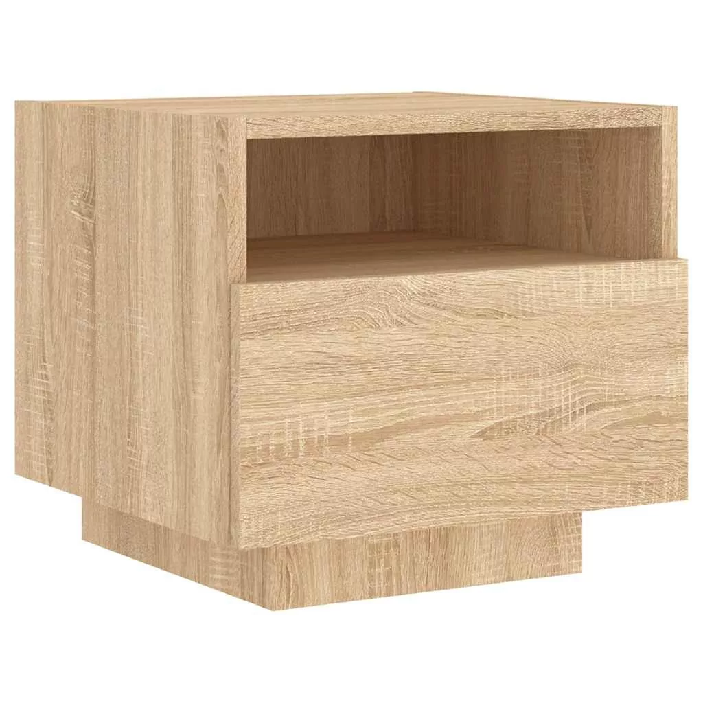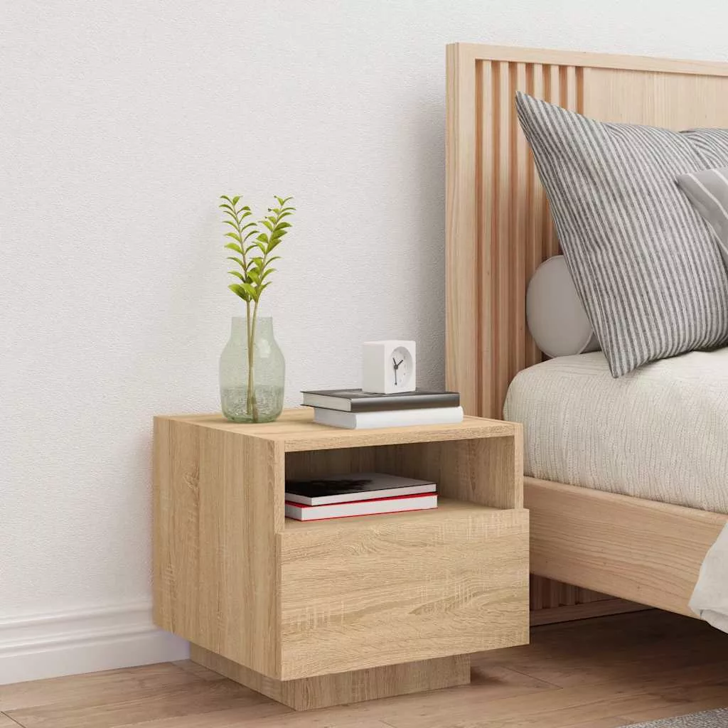 sonoma tölgy színű éjjeliszekrény LED-ekkel 40 x 39 x 37 cm
